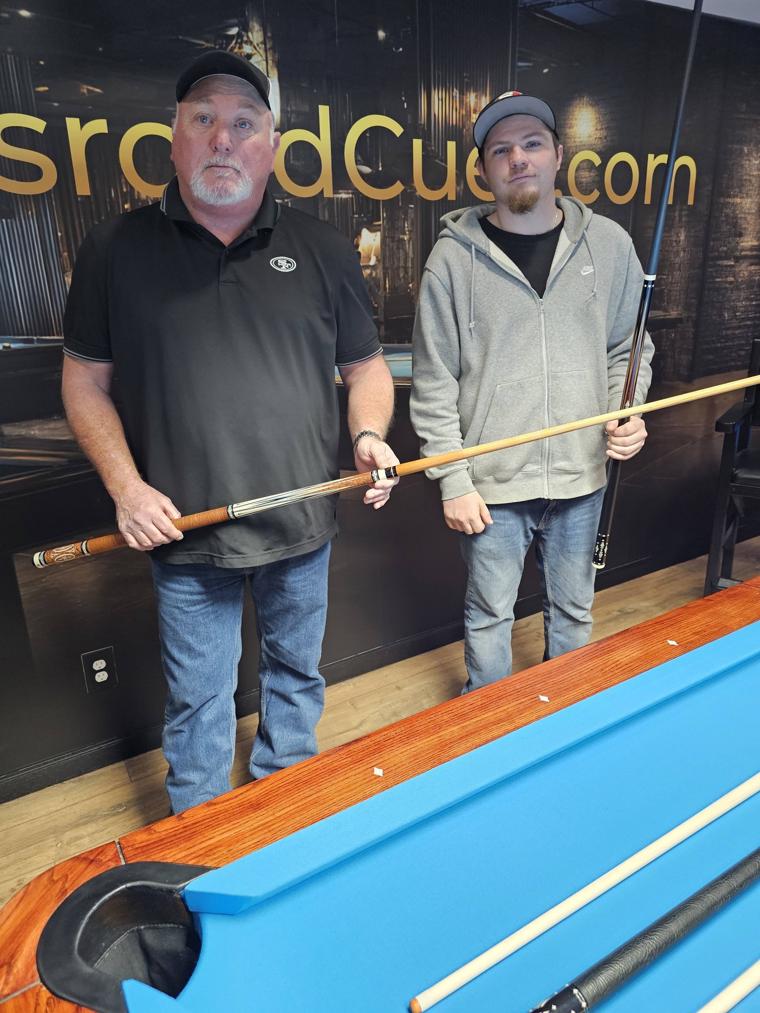 Jay and his family have purchased several cues from us over the years! We normally ship everything to him in California, this time he came all the way to Indiana to our headquarters at Crossroad Cues!