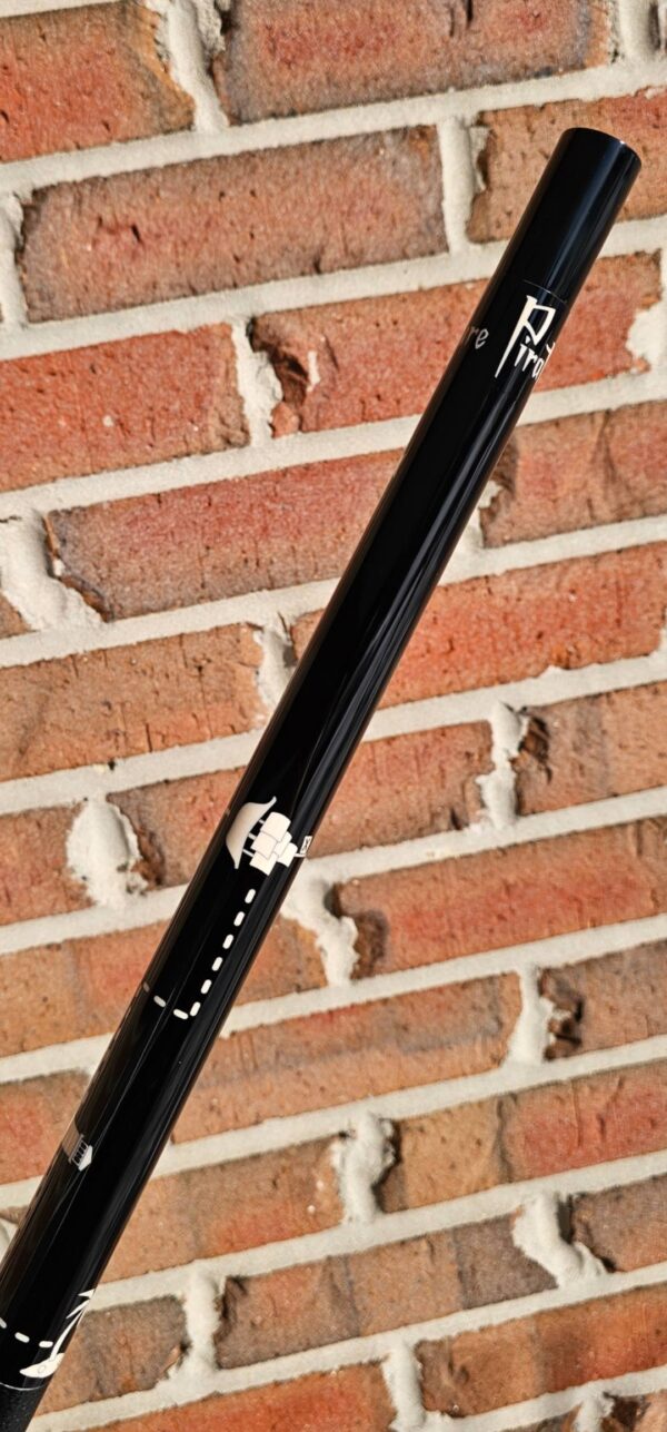 - The cue is made of ebony and ivory with a silver logo. We made all the designs in the cue with inlays rather than scrimshaw or engraving. We wanted it to play as good as it looks, so it has a straight grain maple core and ail our normal internal construction. The cue finishes out at 19 1/4 oz., and comes with 2-13mm shafts with ivory ferrules and custom joint protectors.