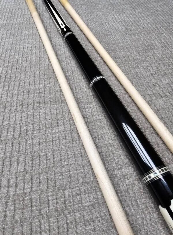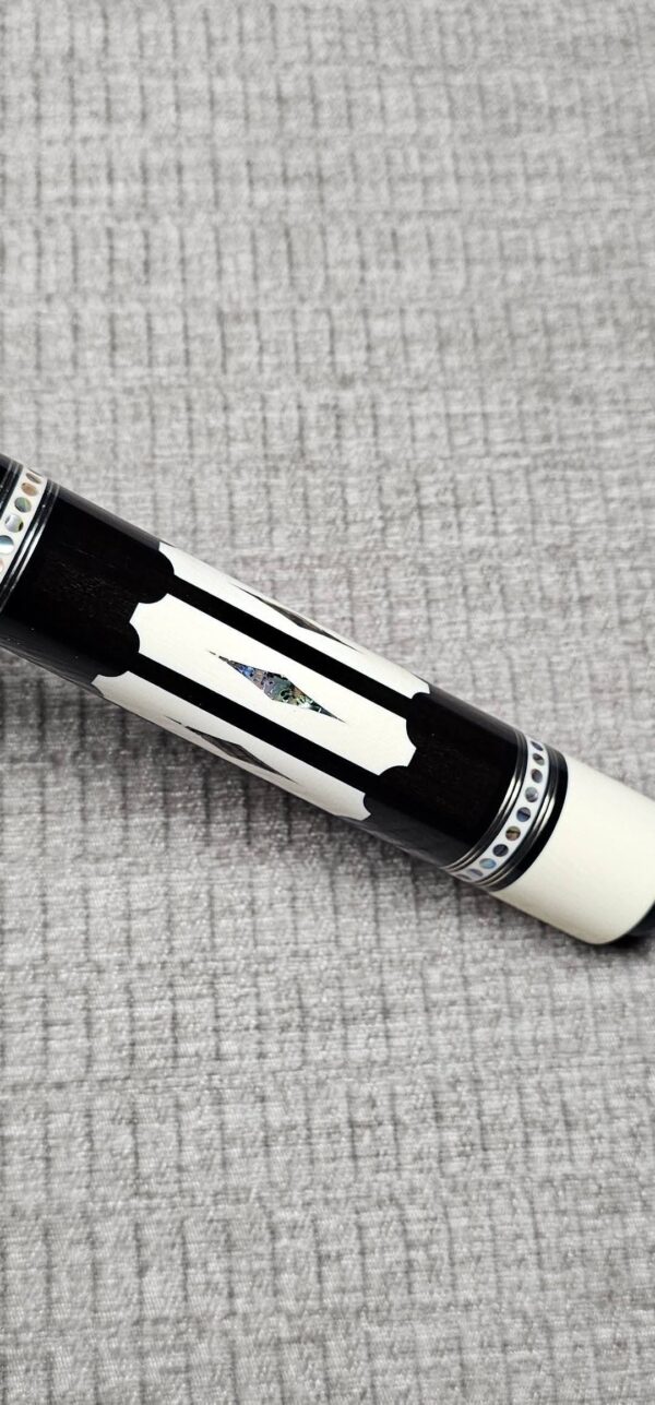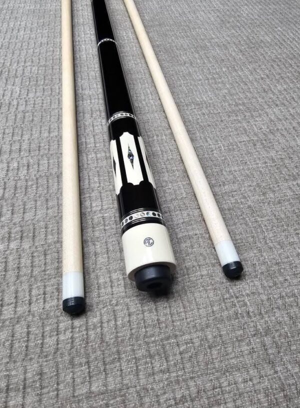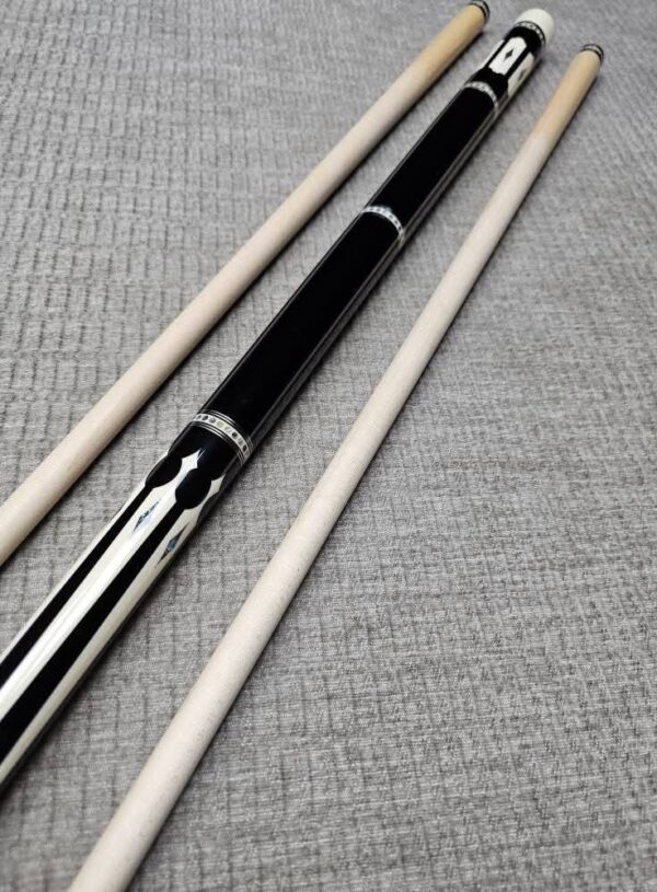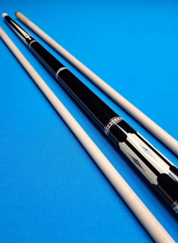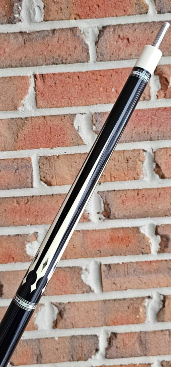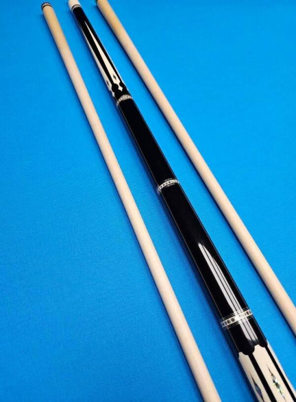 - Ariel finishes this remarkable cue with 6 natural white Razor blade windows in the butt sleeve that literally will mesmerize you when you roll the cue under the lights! The Black & White Tuxedo colors combined with these type of inlays are truly amazing!