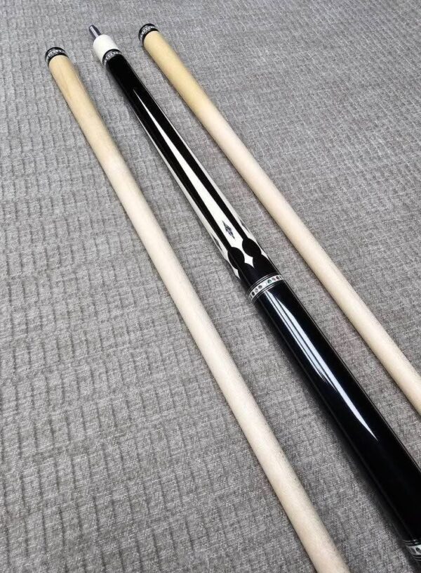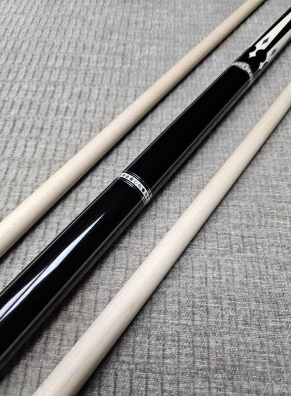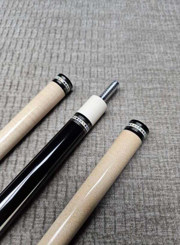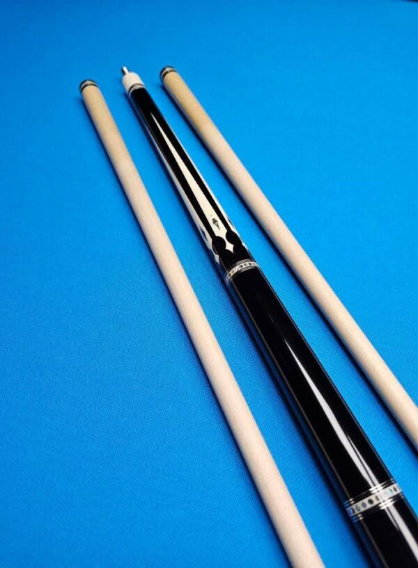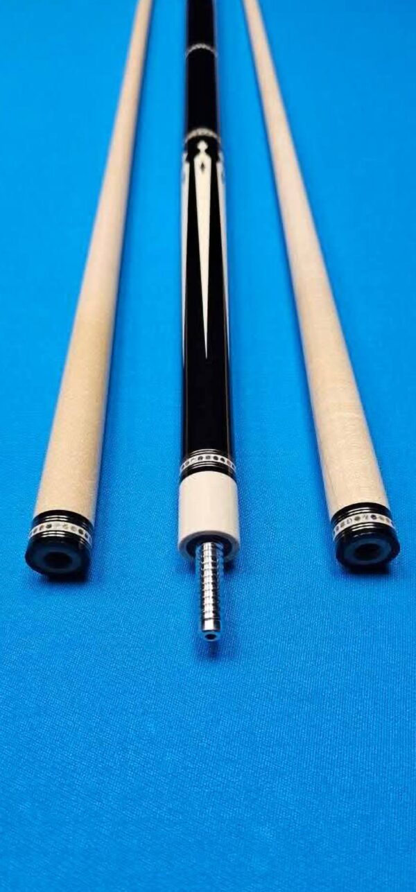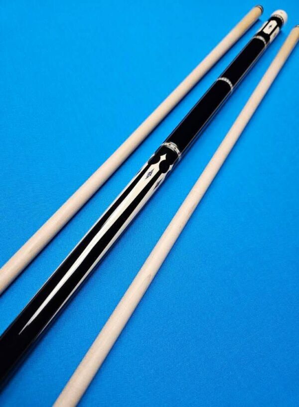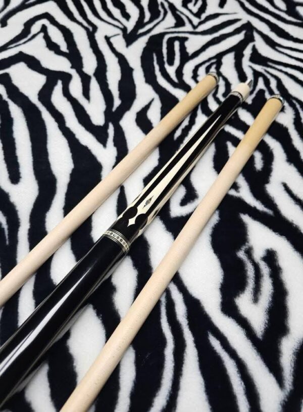 - Ariel finishes this remarkable cue with 6 natural white Razor blade windows in the butt sleeve that literally will mesmerize you when you roll the cue under the lights! The Black & White Tuxedo colors combined with these type of inlays are truly amazing!