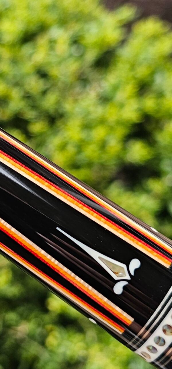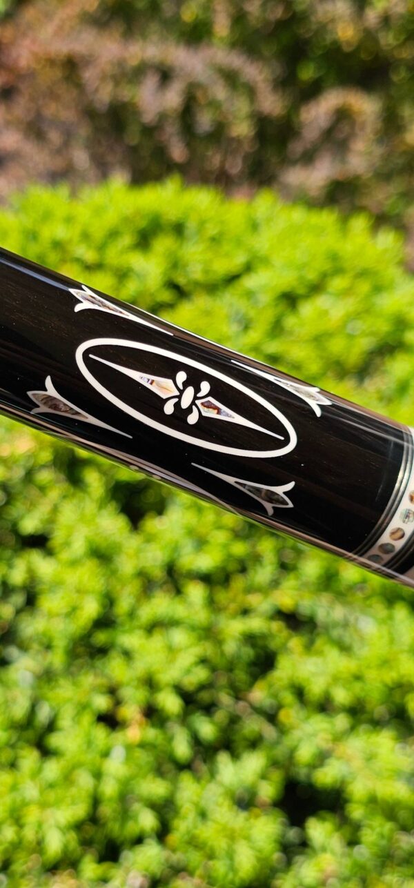 - A massive amount of intricate inlay work throughout this gorgeous design! The special design pattern in the butt sleeve looks incredible in person! The inlays are Paua shell A.K.A. “New Zealand Abalone!”