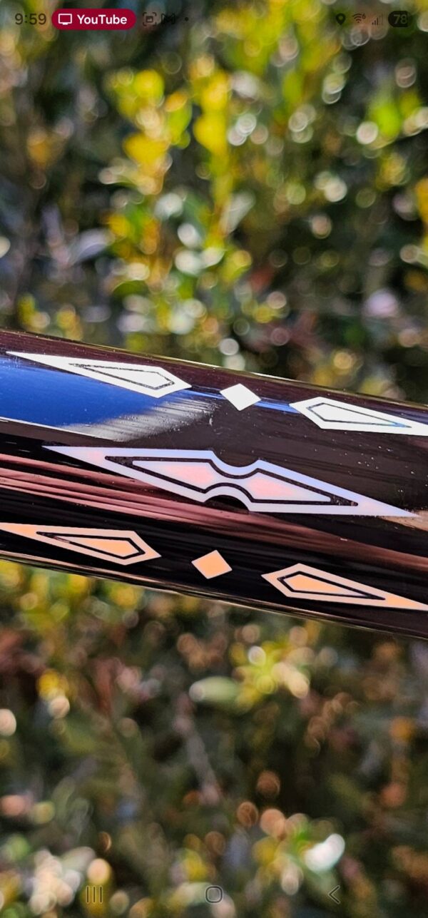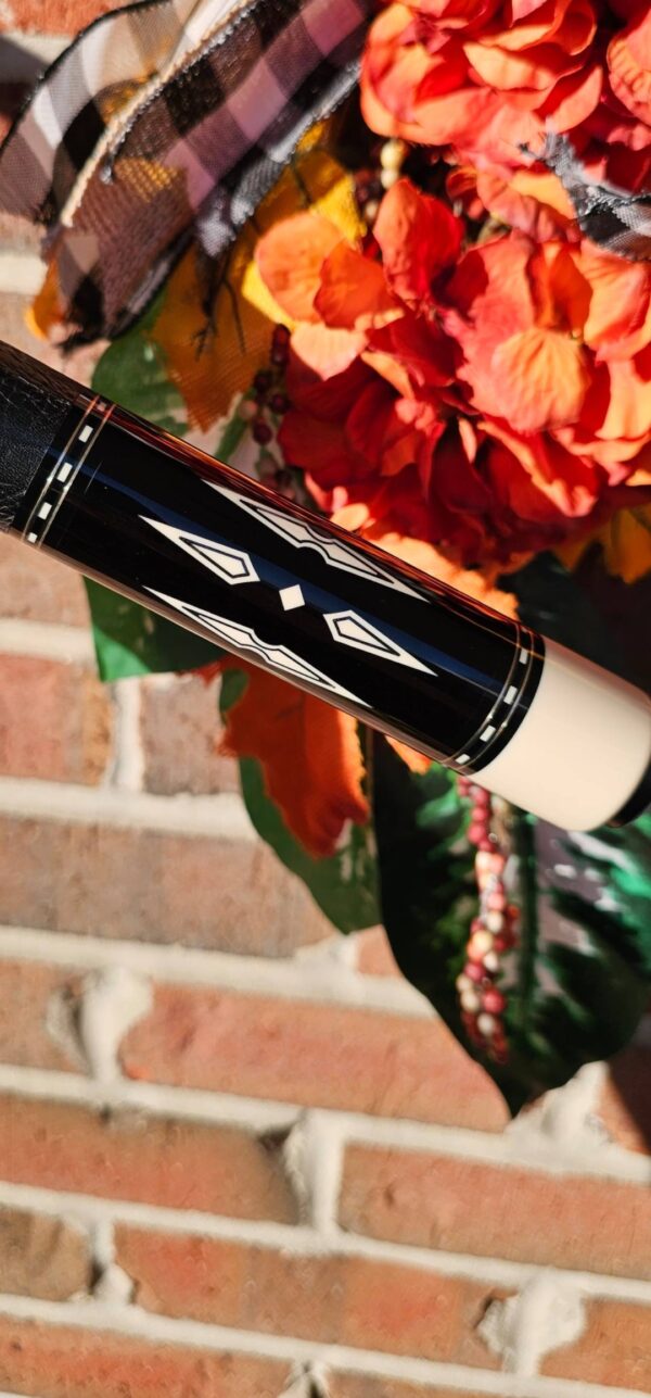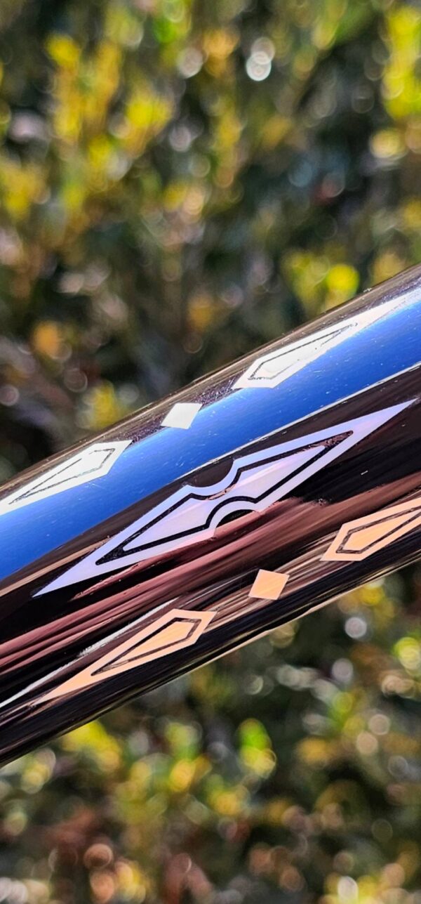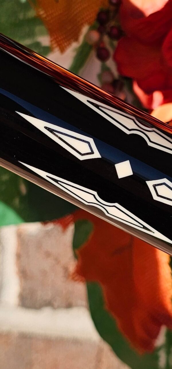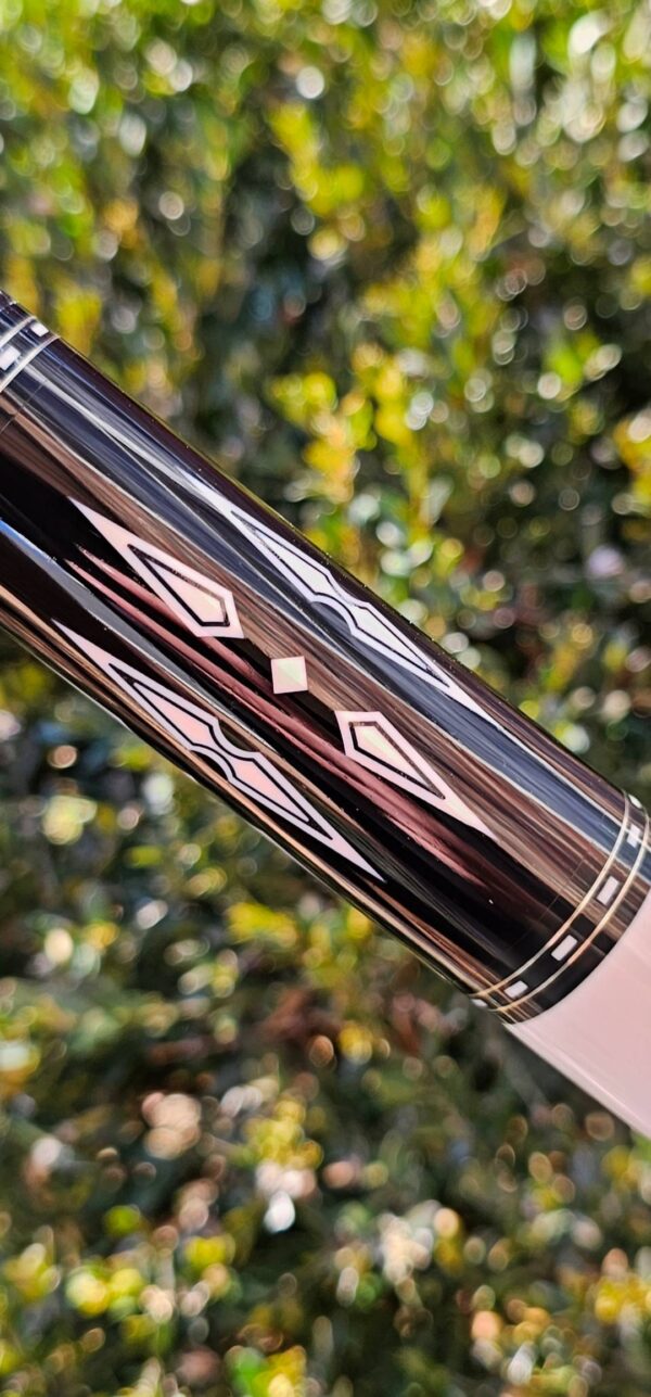 - 4- Long & Sharp Ebony Points in-to figured Birdseye up front! Ebony butt sleeve w/ a very cool design pattern!