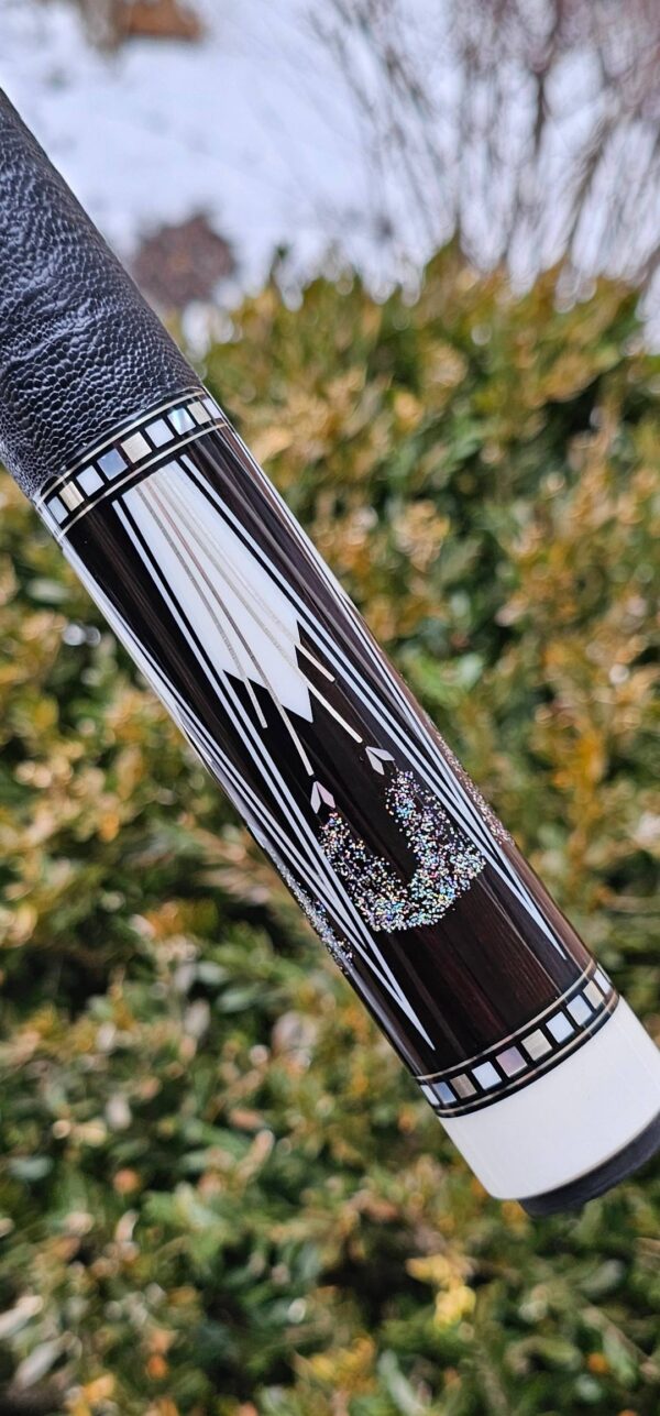 - Zoom in to the pics to get a perspective of how insaney beautiful these special multi colored Abalone shell designs look! When light hits them they look fabulous! We have never seen anything like this in a cue! Leave it to Marcus to wow us once again!