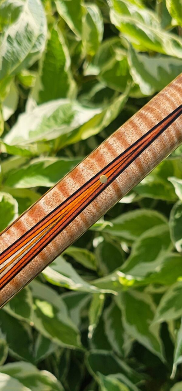 - Very long & sharp Cocobolo points in-to figured Curly Maple up front / Cocobolo butt sleeve in the back.