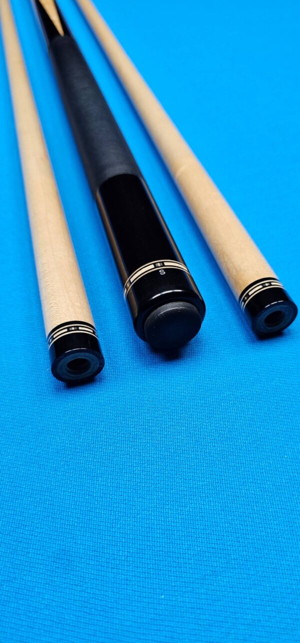 • A tight form fit black linen wrap separates the front and back of the cue with a perfect fit / grip.