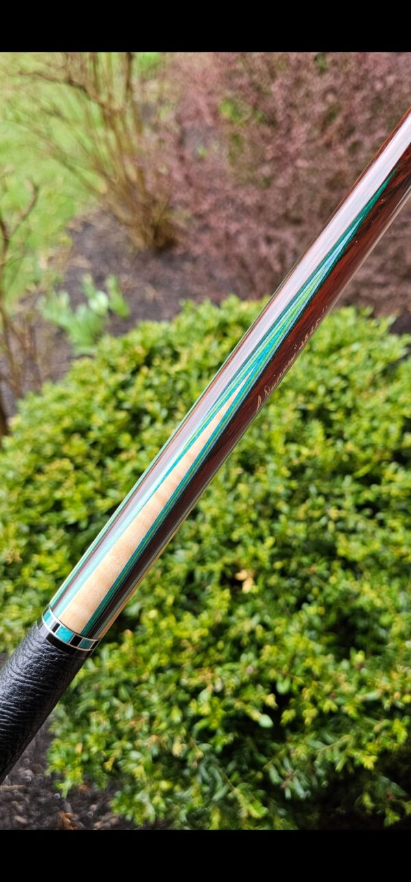 • Our favorite part about this super cool cue is the special custom ring work! These special rings are RR track style w/ Stabilized Burl &