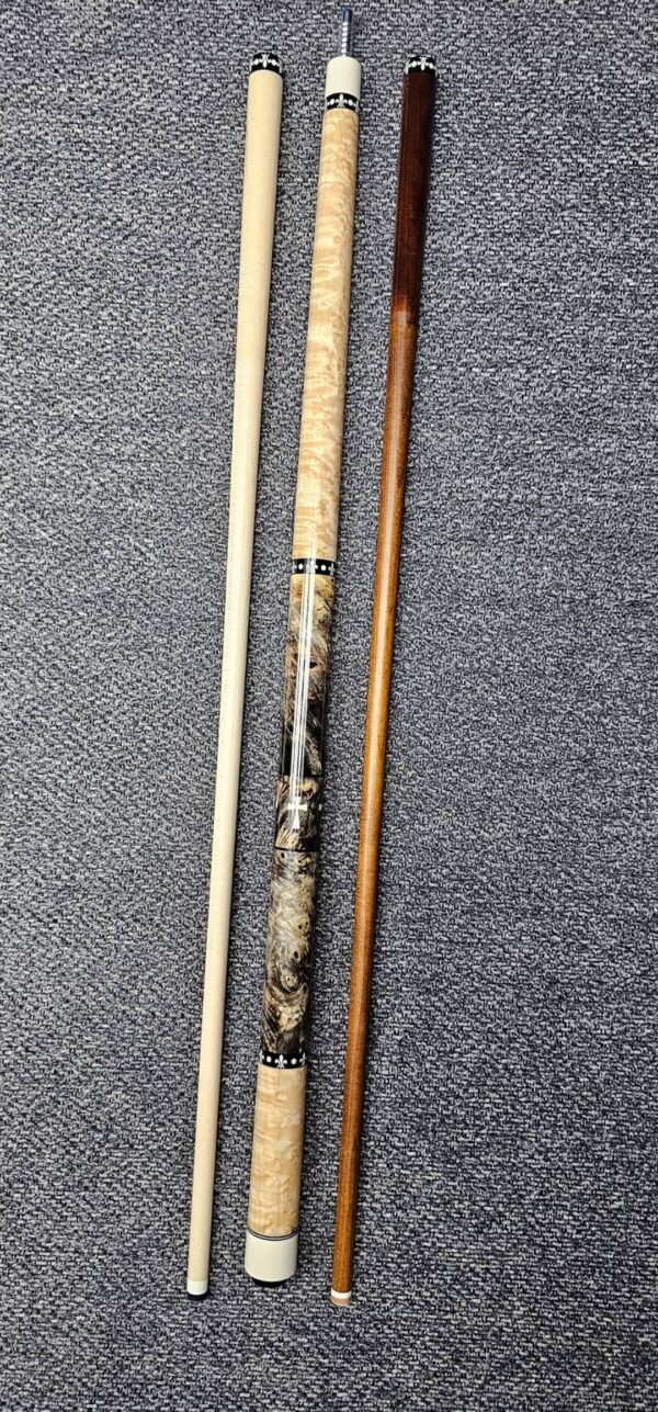 - Doug Moore made this beautiful wrapless custom cue with the intention of it having a crazy good hit! Everything he makes plays really good, this one actually hits exceptional! It has full Purple Heart core all the way through the center! This type of construction plus + this wood combo is guaranteed to play Jam up! 100% Satisfaction Guaranteed! ( 59″ total length together! )