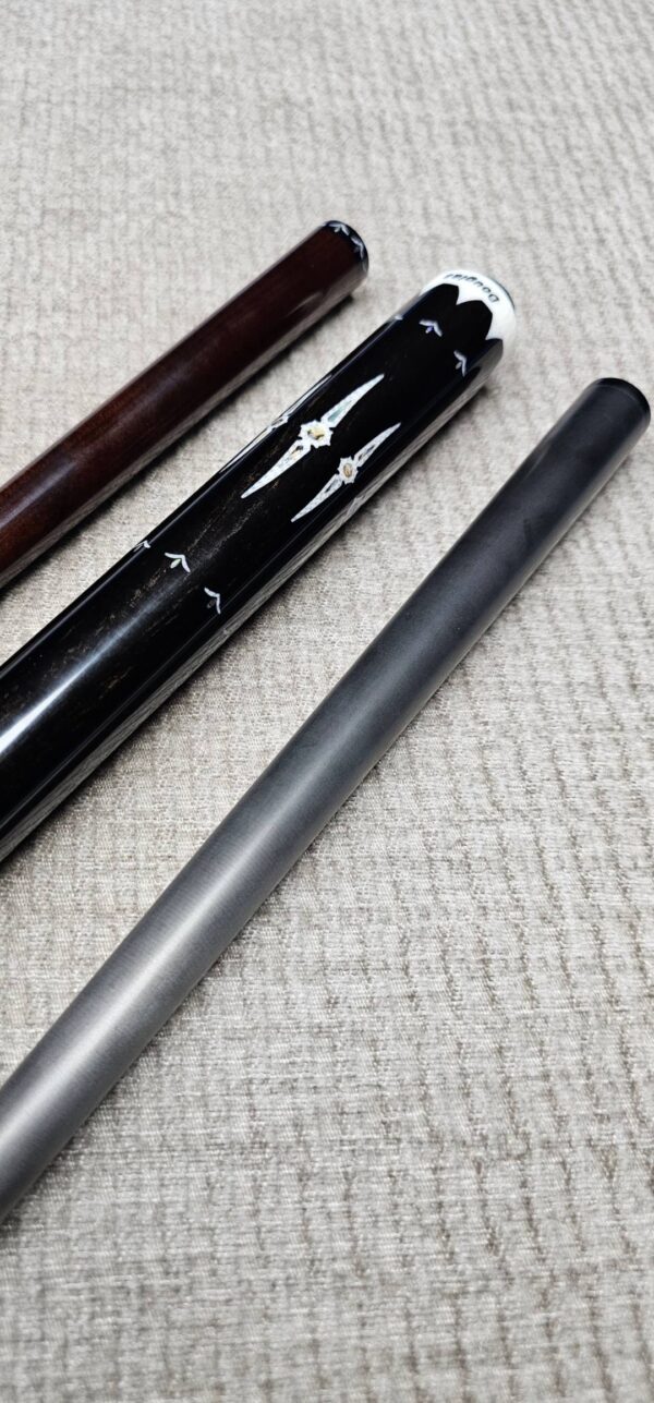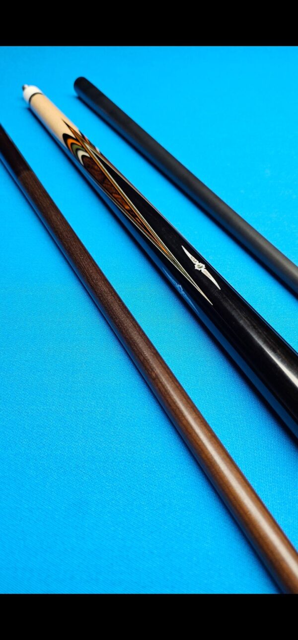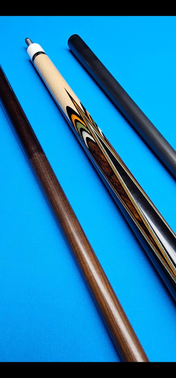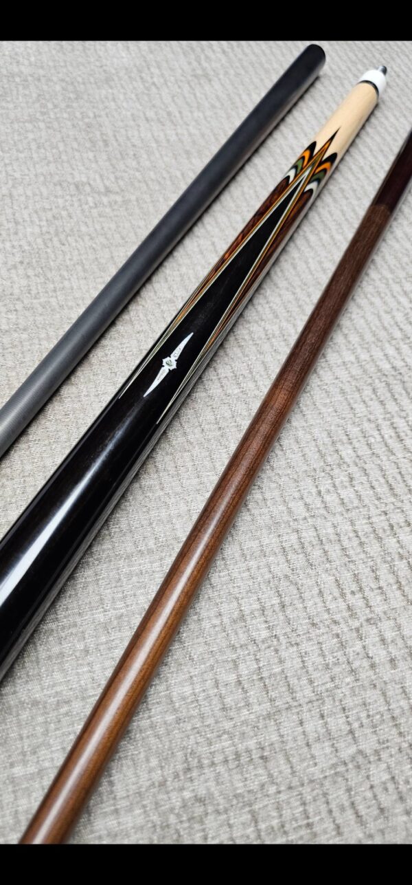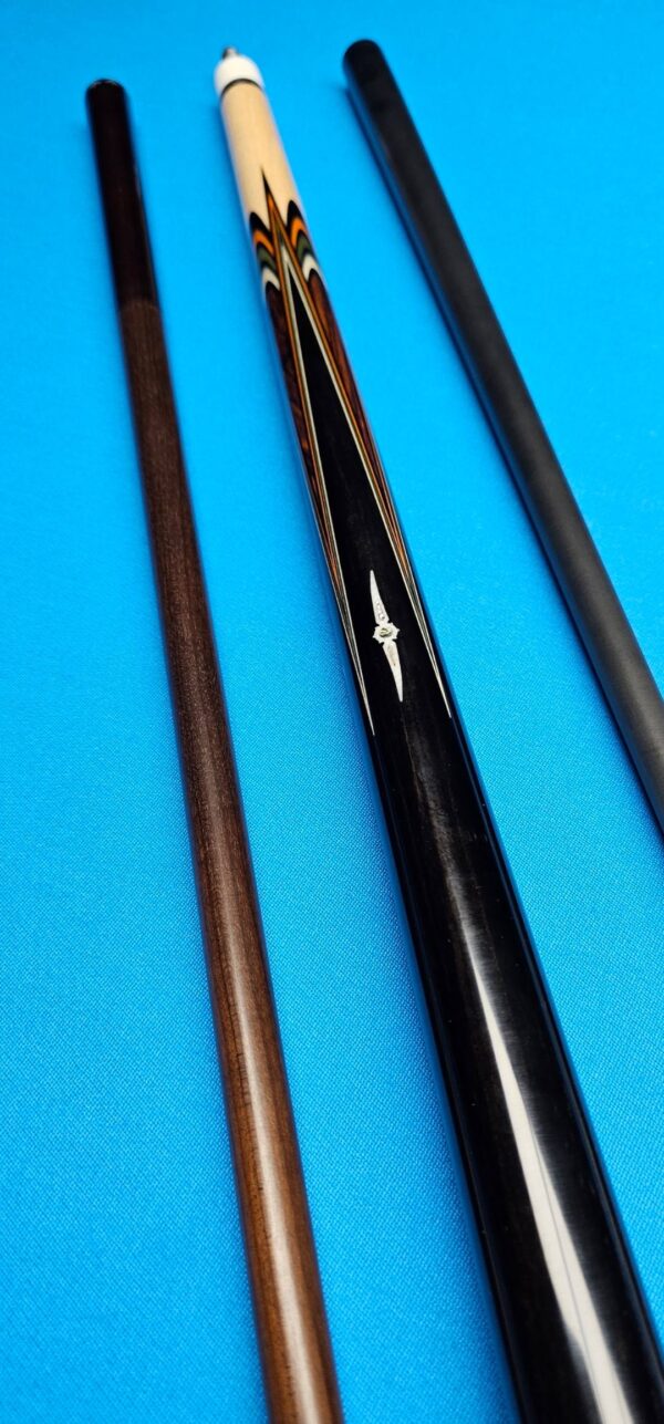 - With the type of woods, beautiful inlay work, and high performance shafts included this cue could easily be priced much higher! This is a first come first serve online special offer exclusively at Crossroad Cues!