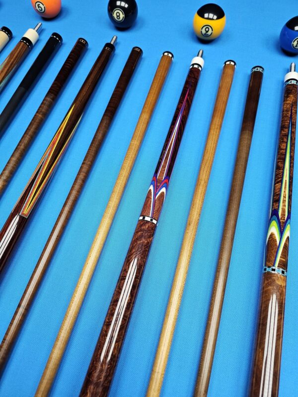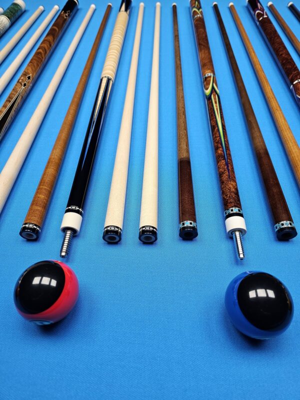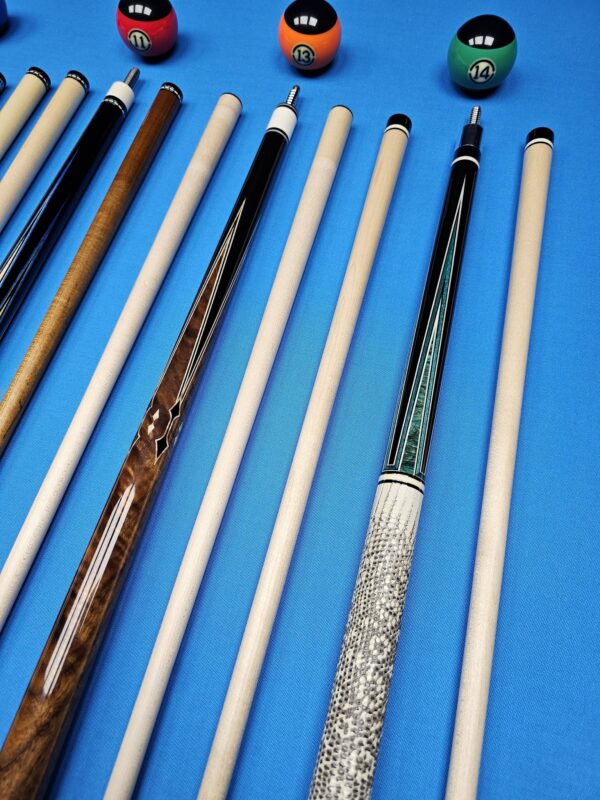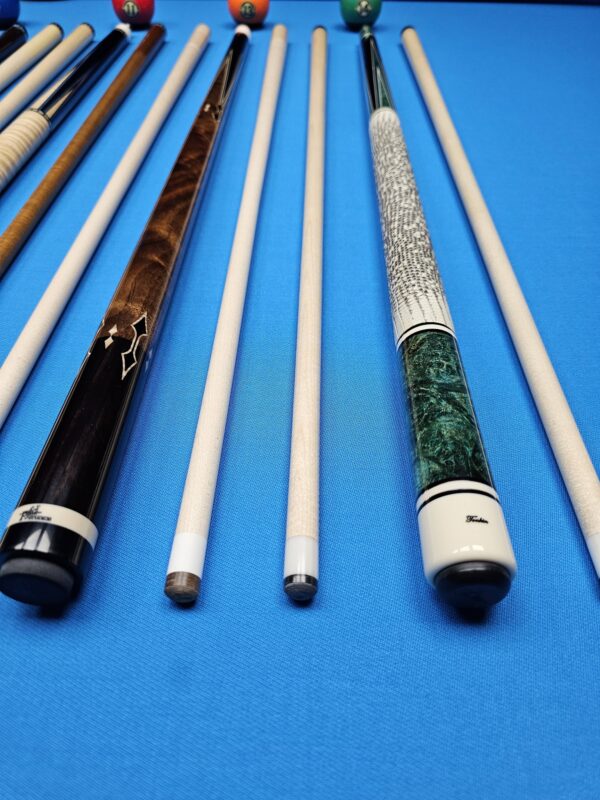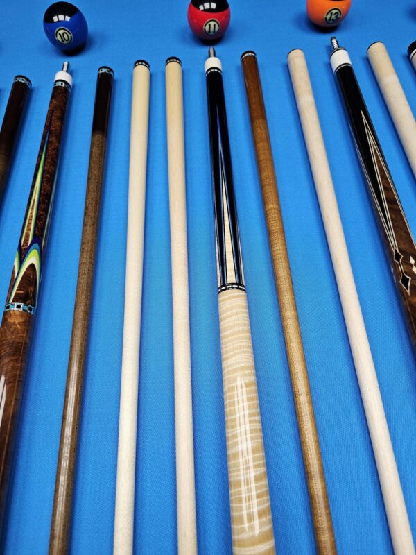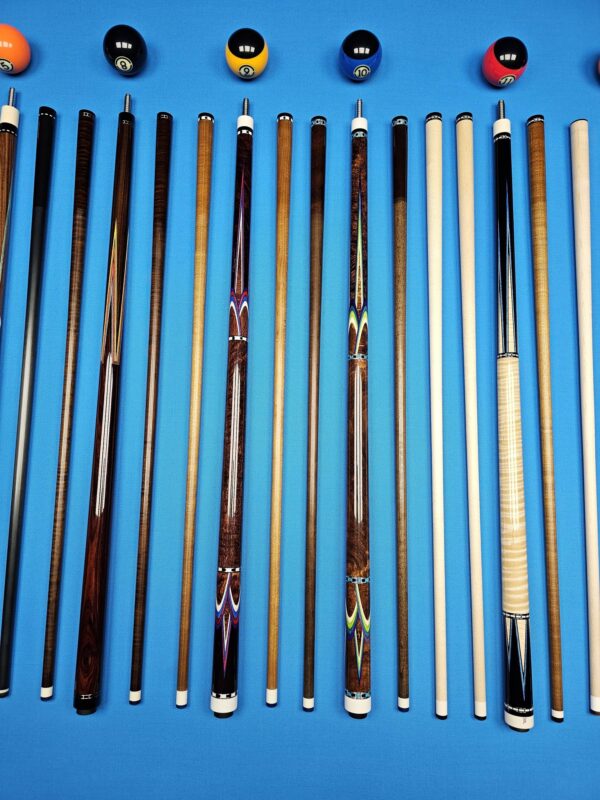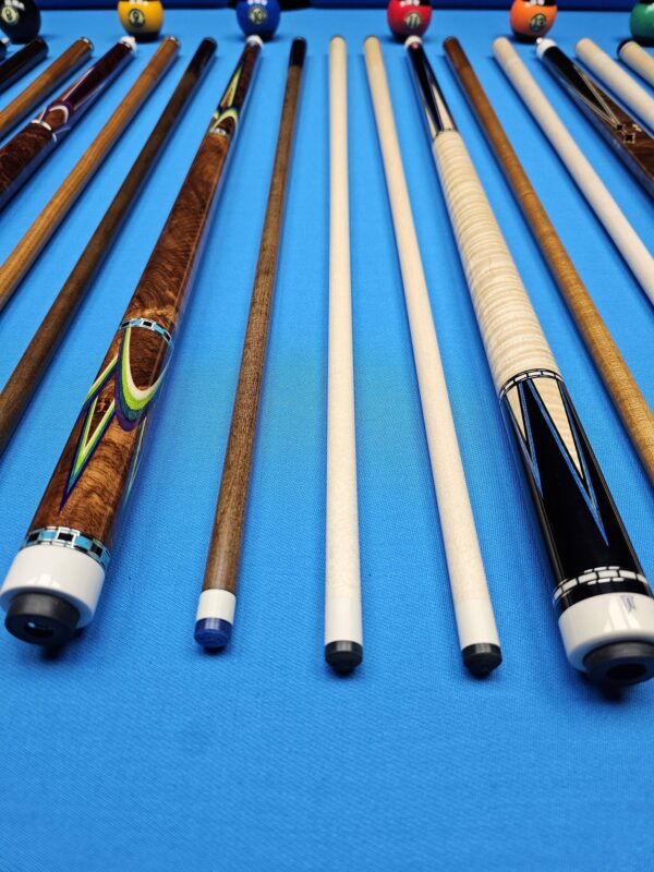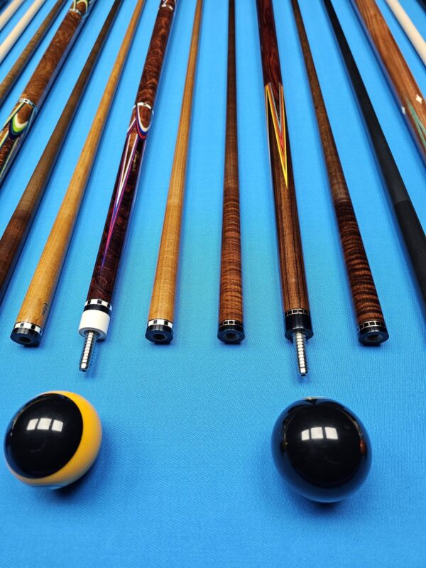 • These are all EXCELLENT custom cues made by top tier American Cuemakers that are very sought after! To get any of these in your hand or on the table with no wait time is a golden opportunity! We are absolutely pumped up to have them in stock in our ever growing inventory here at Crossroad Cues!