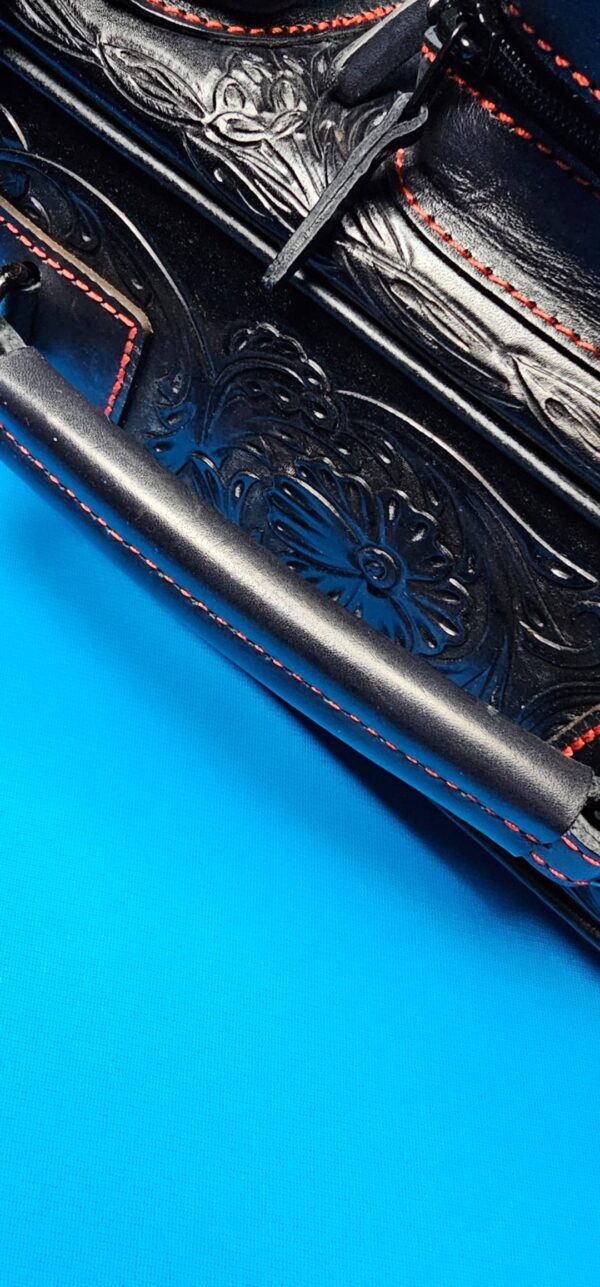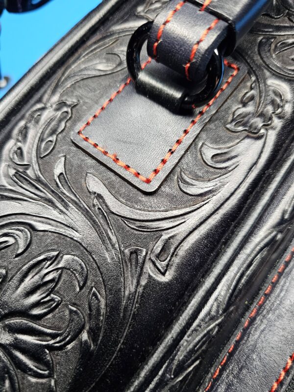 - A matching shoulder strap is included, the custom stitching is tastefully done in Red!