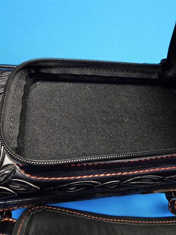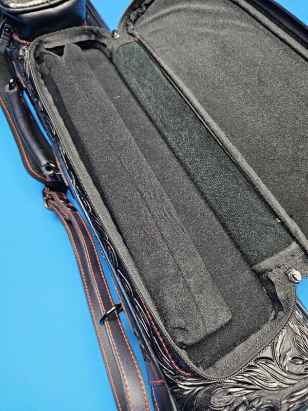 - The large & extra spacious pocket has a jump handle compartment. What’s really impressive about this excellent custom case is the fact that it’s so well made & obviously possesses heavy duty protection for your favorite cues while still being very lightweight / easy & comfortable to carry around while traveling…….