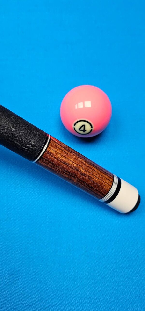 # 4- Beautiful Water-fall Bubinga! 3/8-10 Modified Pin- Excellent Silver/ White / Silver Rings at all positions! Genuine Black oil tanned Spanish Bull leather wrap- Butt weight- 15.3 oz- Killwood shaft- 3.8 oz- 12.85 m. $ 1,775! #DEAL