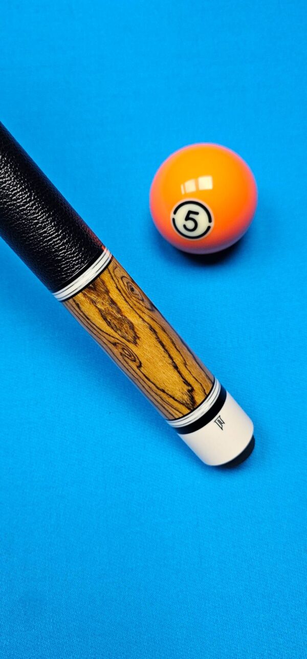 # 5- Stunning & Rare Marble-Wood! 3/8-10 Modified Pin- ( Jim’s new stye ring sets! ) w/ thicker white center w/ silver & black! Genuine black Italian pebbled leather wrap- Butt weight- 15.4 oz- Killwood shaft- 3.8 oz- 12.85 m. $ 1,775! #DEAL