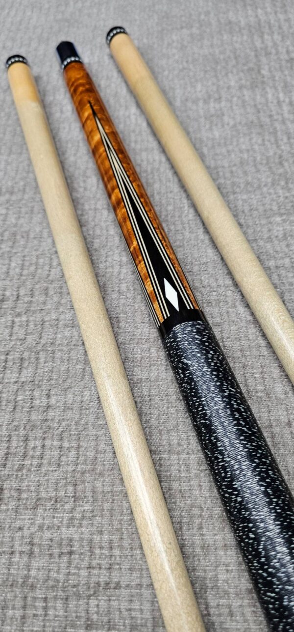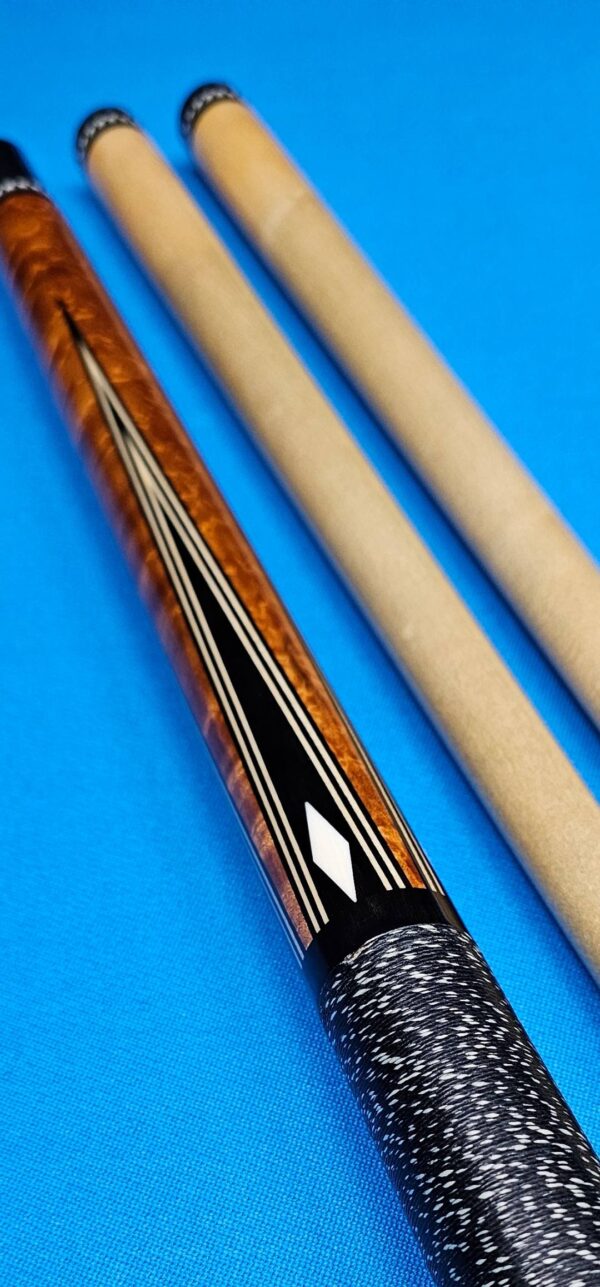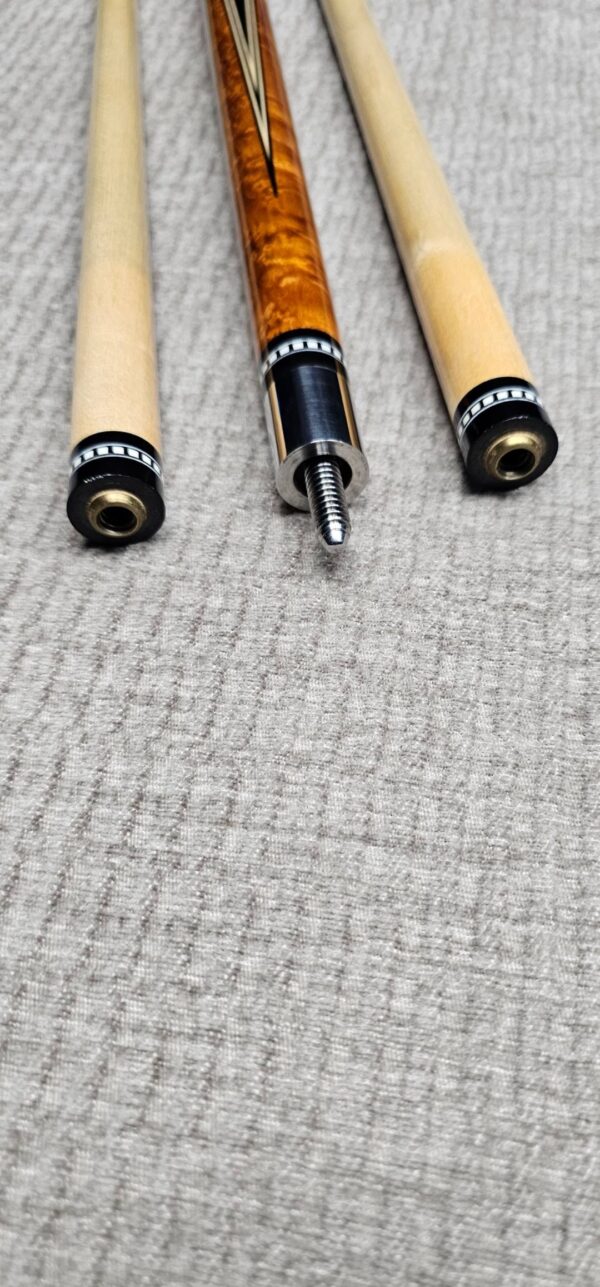 - Both shafts are in nice condition especially for their age! The smaller one has a taper roll but the tip doesn’t come off the table and it rolls straight together with the butt. The cue is in very good overall condition! Besides some minor marks on the SS Joint that can easily be polished out, there are very few signs of play! This cue has definitely been babied! The finish looks fantastic! Nothing like a vintage cue that has been cared for extremely well and hits insanely good!!!
