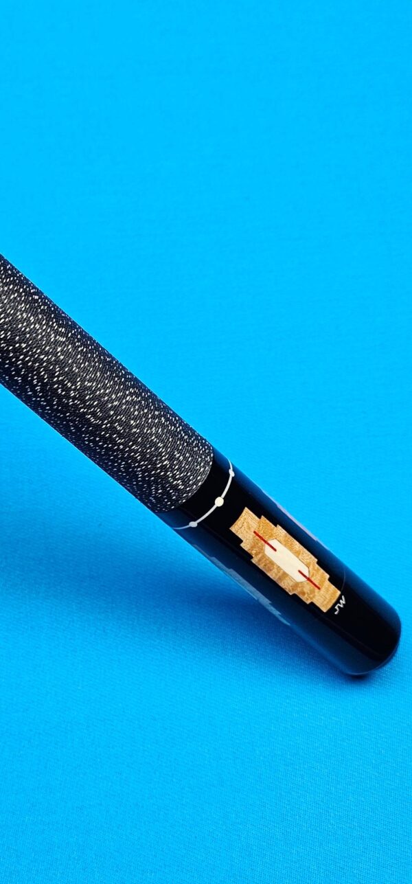 - We know by the logo, the J with the upright W, that this cue was made between 1980 and 1983. Another indication that this is a fairly early Josswest are the stacked veneers around the blocks, as opposed to “V” cut veneers on the corners which he would have used in later years.