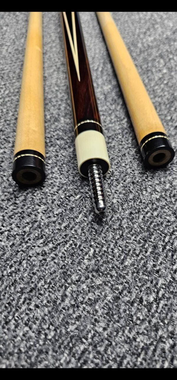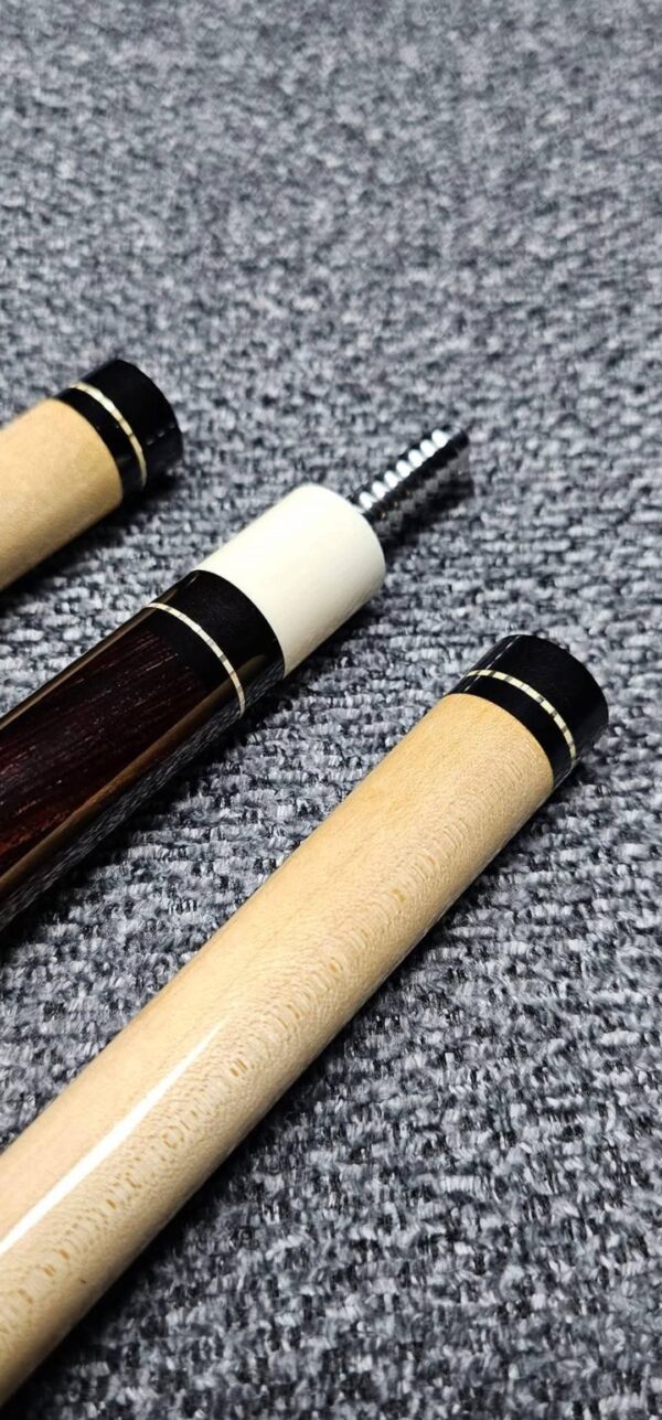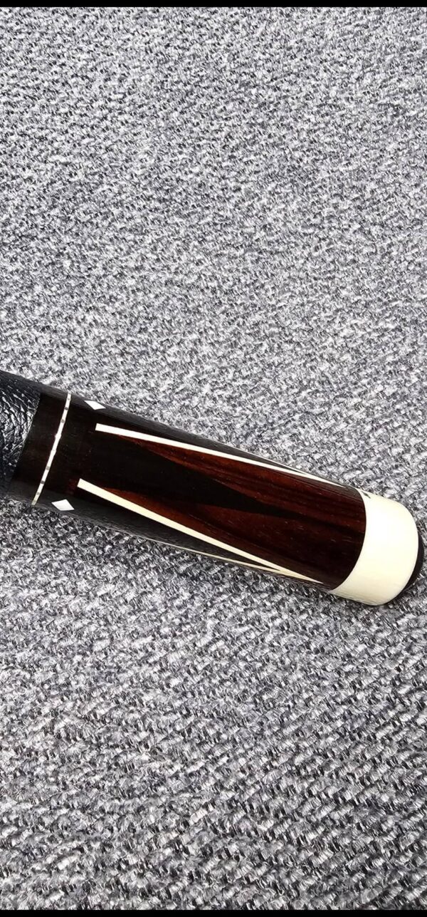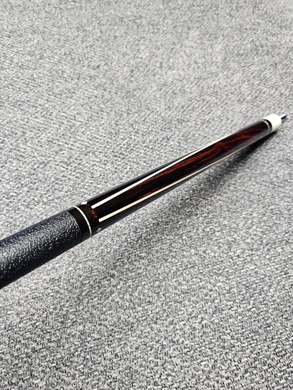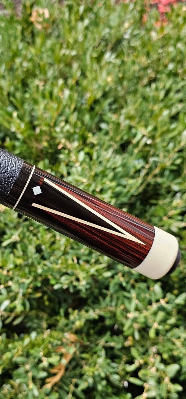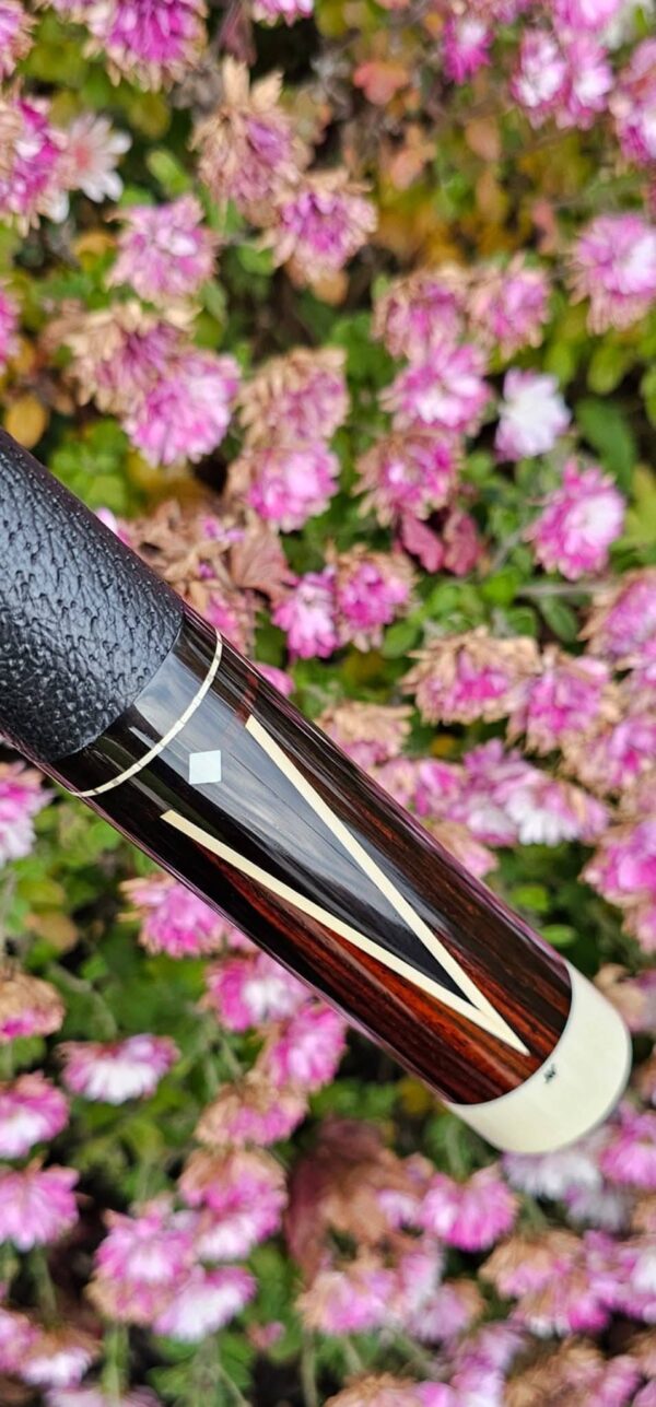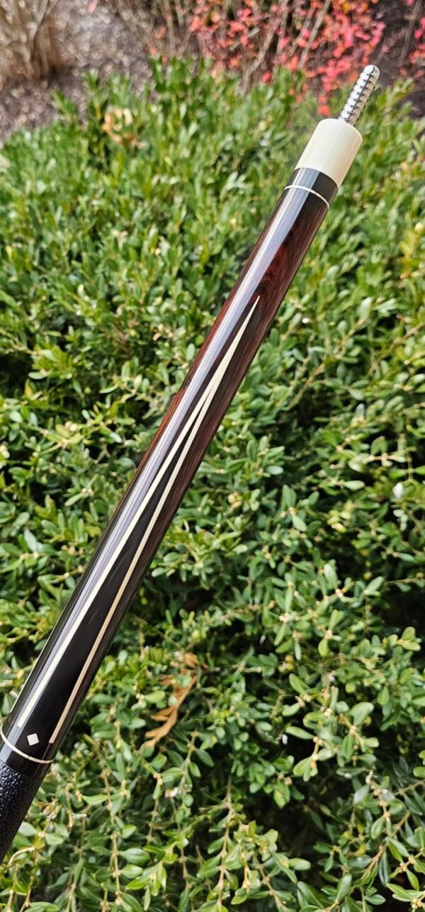 - There are 4- Ebony points up top / 4- Ebony reversed points down low that have natural colored veneers. What really gives this beautiful cue and extra special touch are the straight Ebony “Ghost points” in between the veneered points! These have the appearance of fading away in-to the Cocobolo……