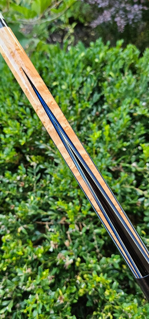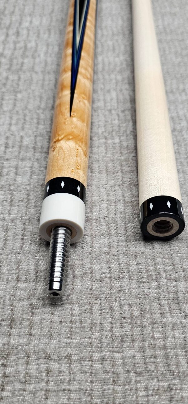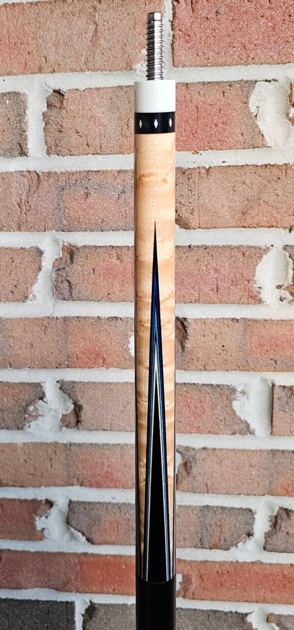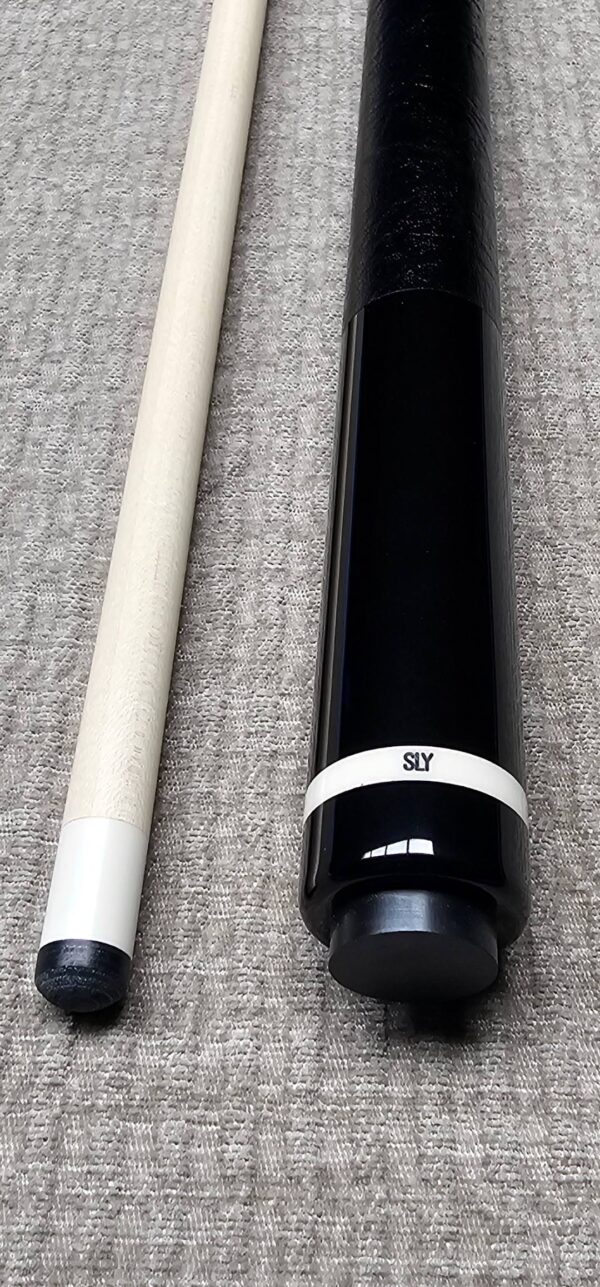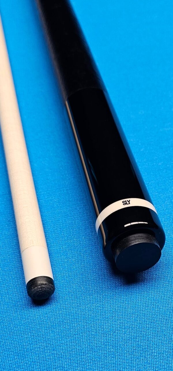 - Very well constructed cue like everything Leon Sly builds, of course! This one is cored up top with Purple Heart and it has a laminated Maple handle. This type of construction not only has a great hit and awesome overall playability, it’s made to stand the test of time…….. Very stable, durable, and well balanced.