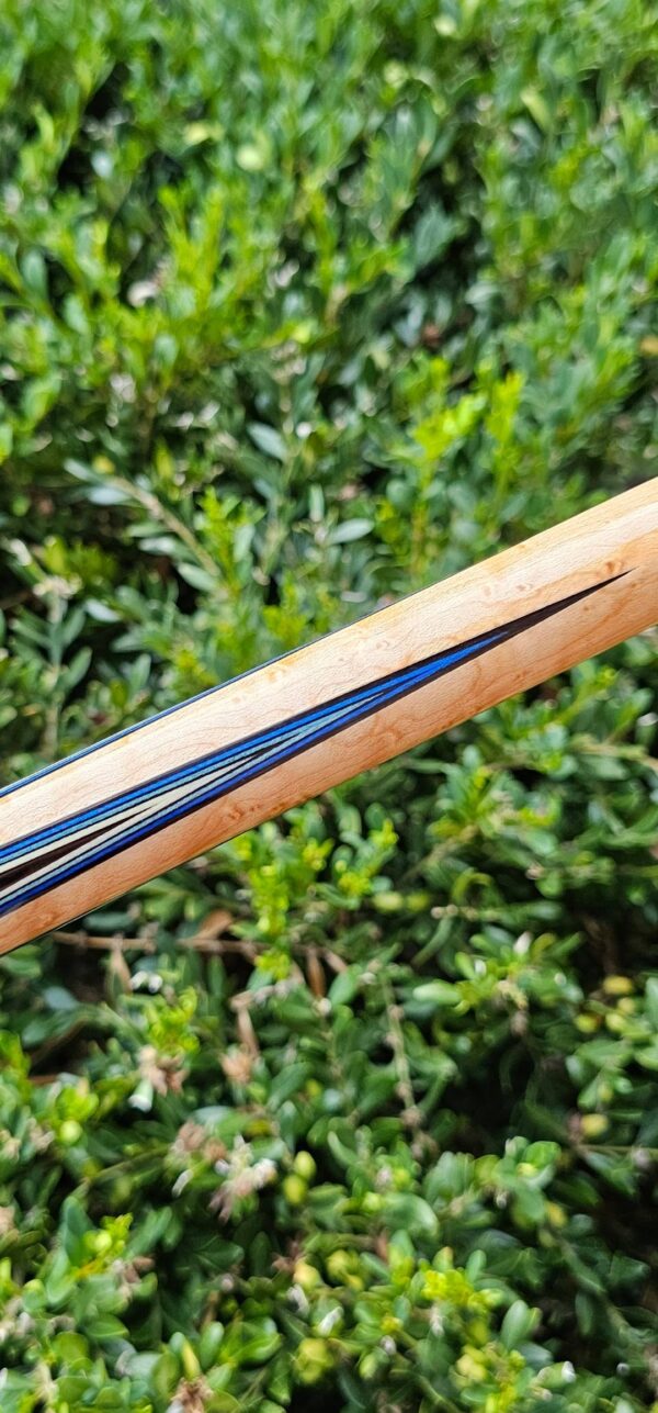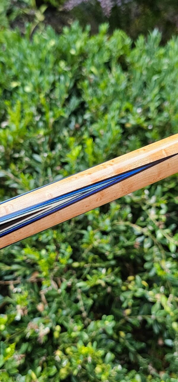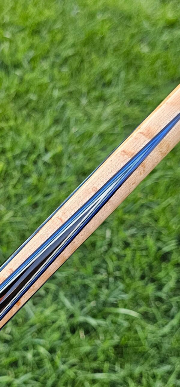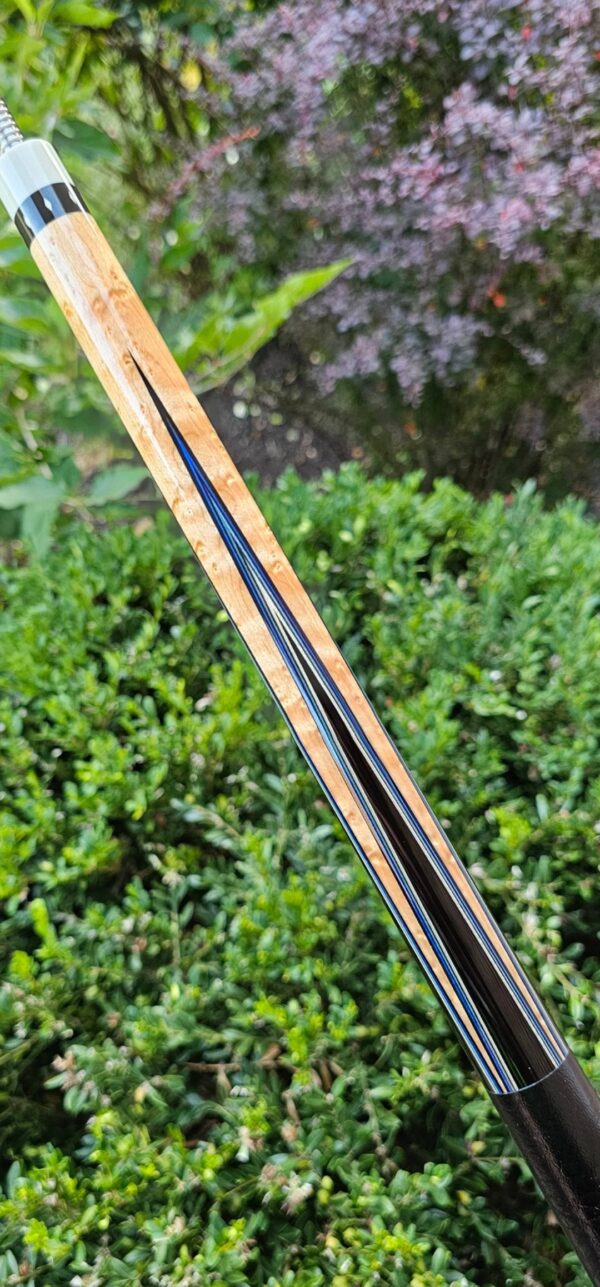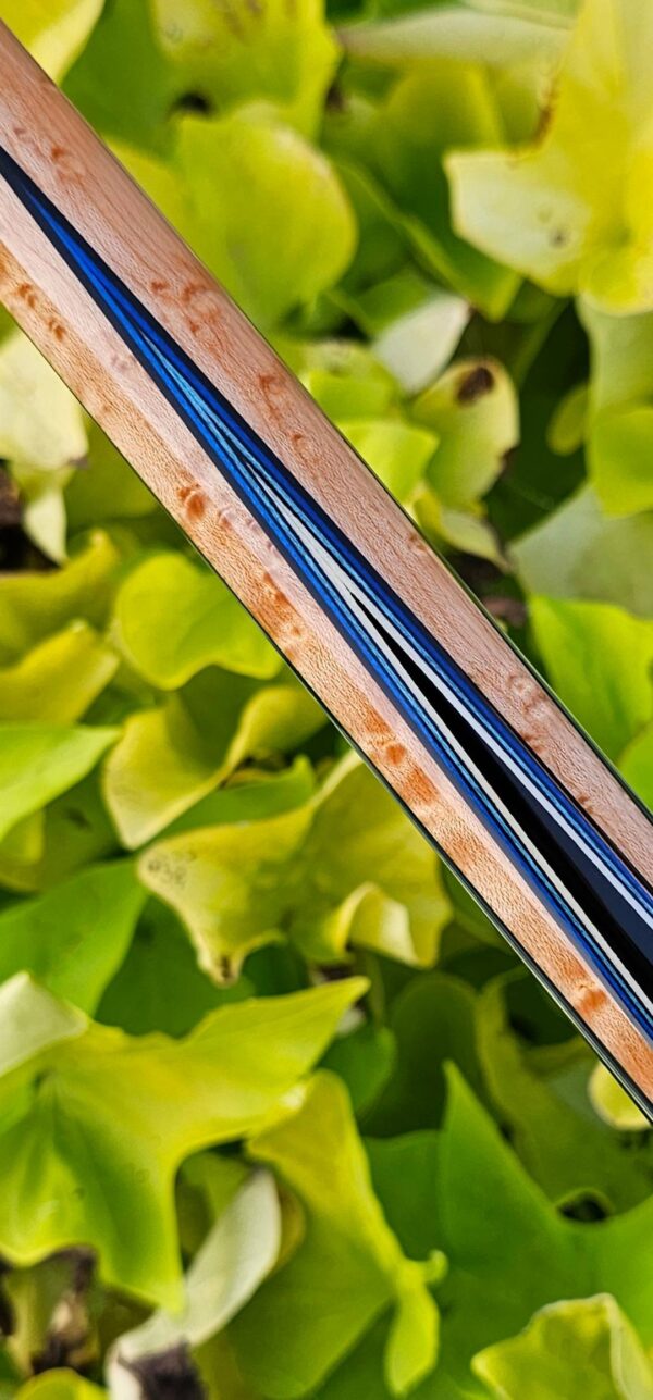 - Very well constructed cue like everything Leon Sly builds, of course! This one is cored up top with Purple Heart and it has a laminated Maple handle. This type of construction not only has a great hit and awesome overall playability, it’s made to stand the test of time…….. Very stable, durable, and well balanced.
