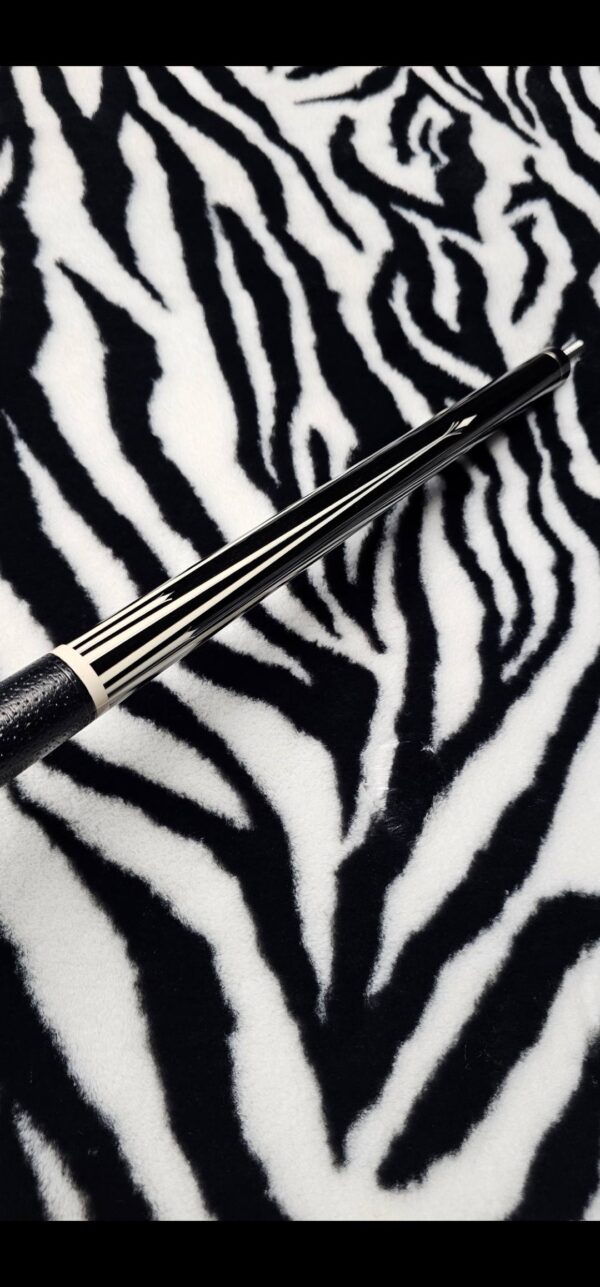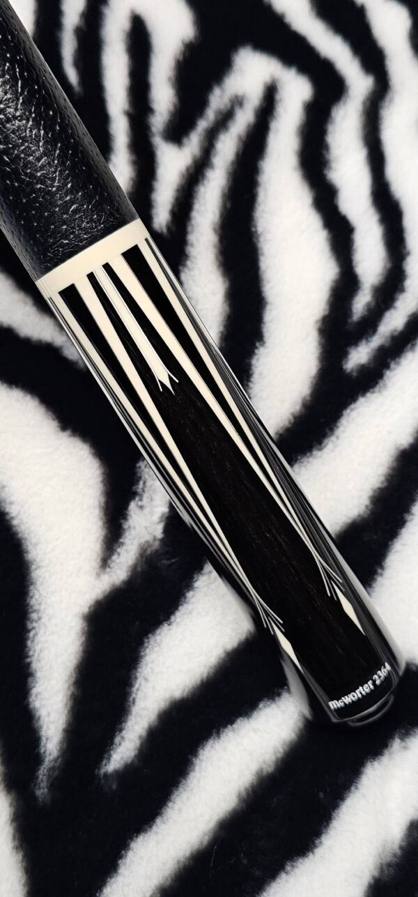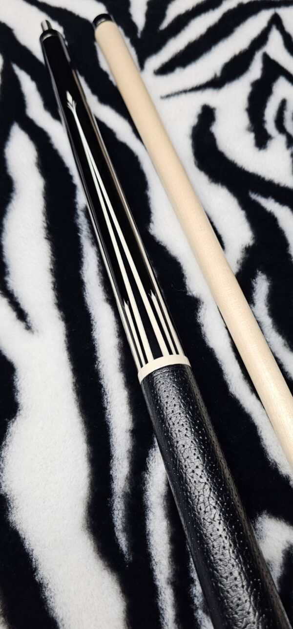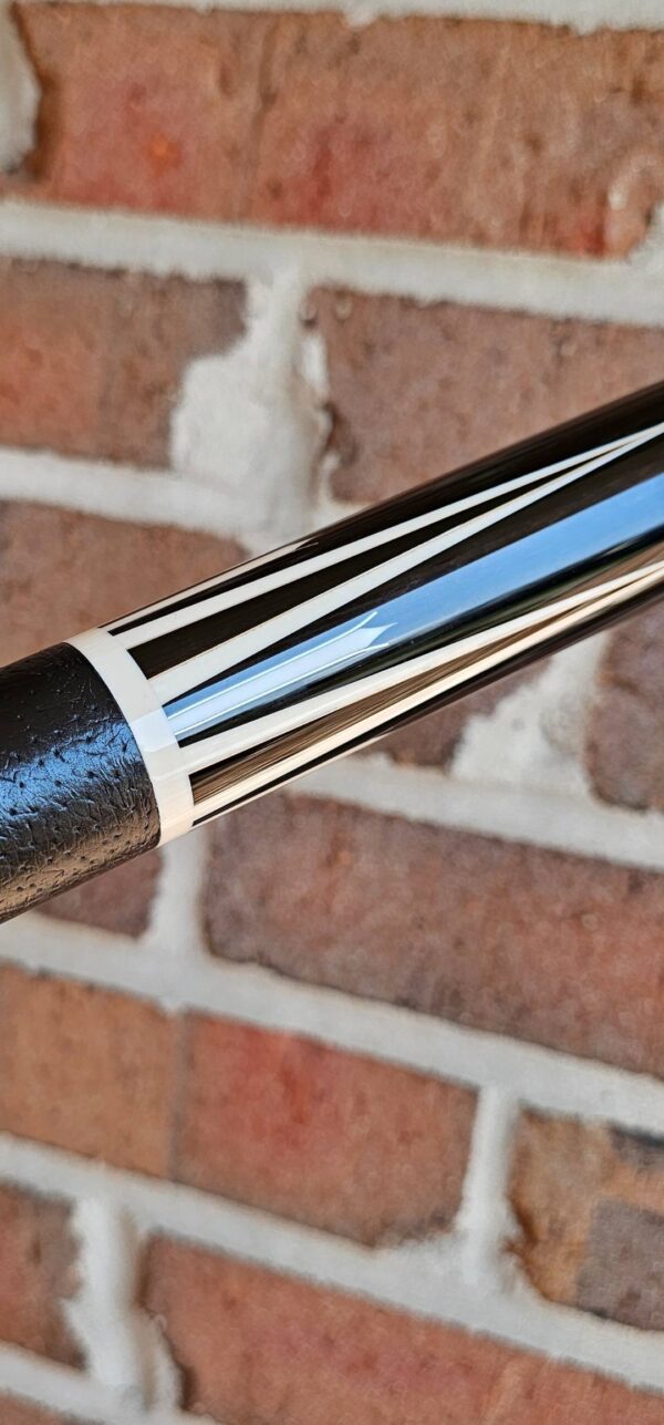 • Jerry is known as one of the very best when it comes to his silver work! This alone creates is a very subtle contrast & highlight to the already incredible design! When you spin this magnificent cue under the lights, the combination of the TUXEDO style colors & silver are absolutely mesmerizing!!