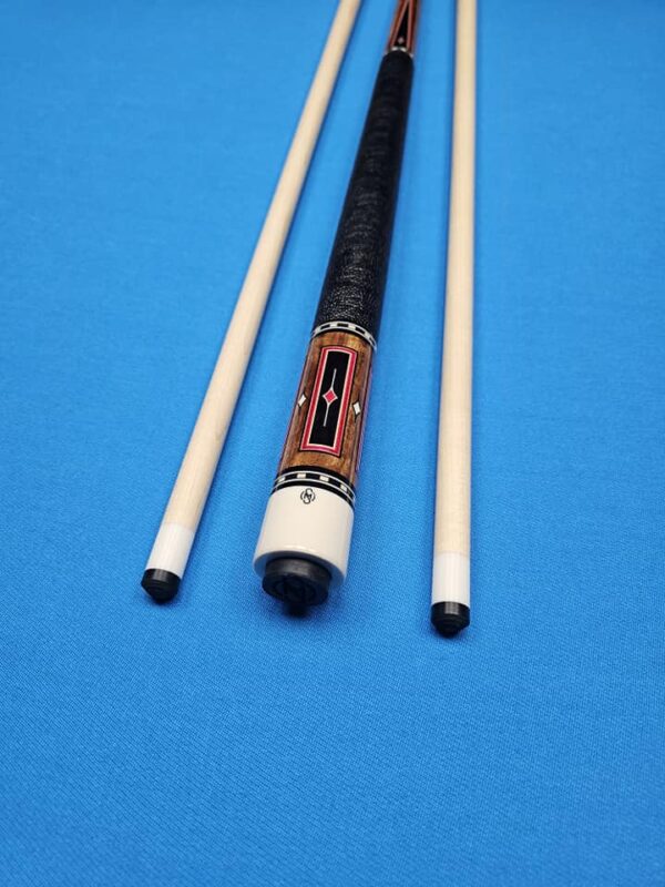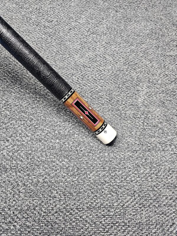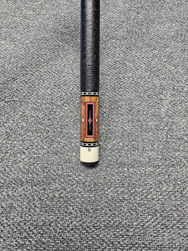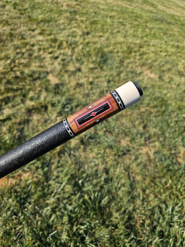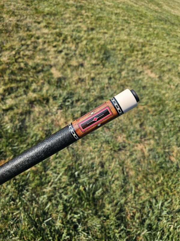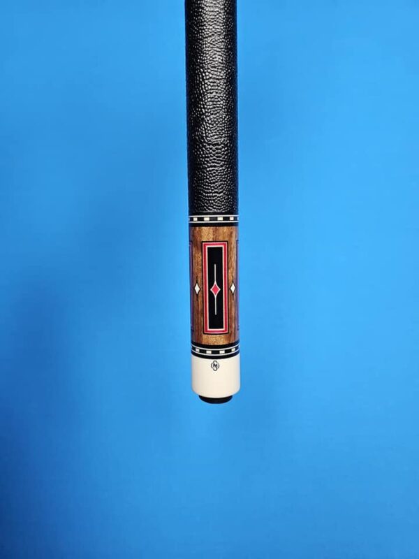 • Chechen butt sleeve with 4- matching mitered box windows……The colors mirror the front of the cue.