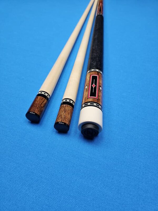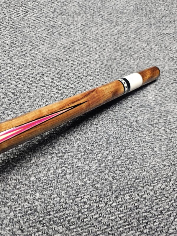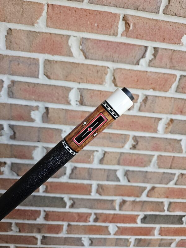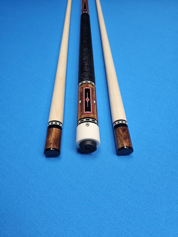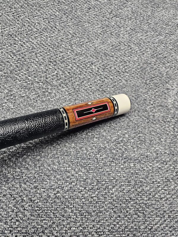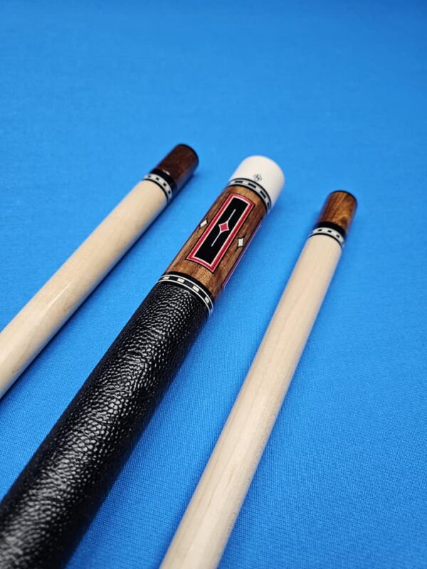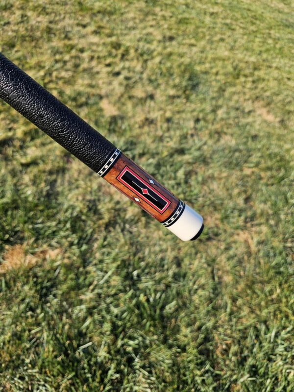 • Chechen butt sleeve with 4- matching mitered box windows……The colors mirror the front of the cue.