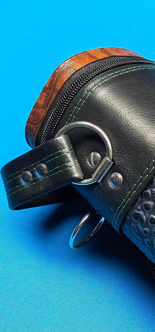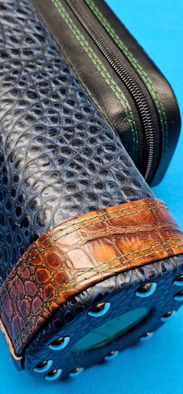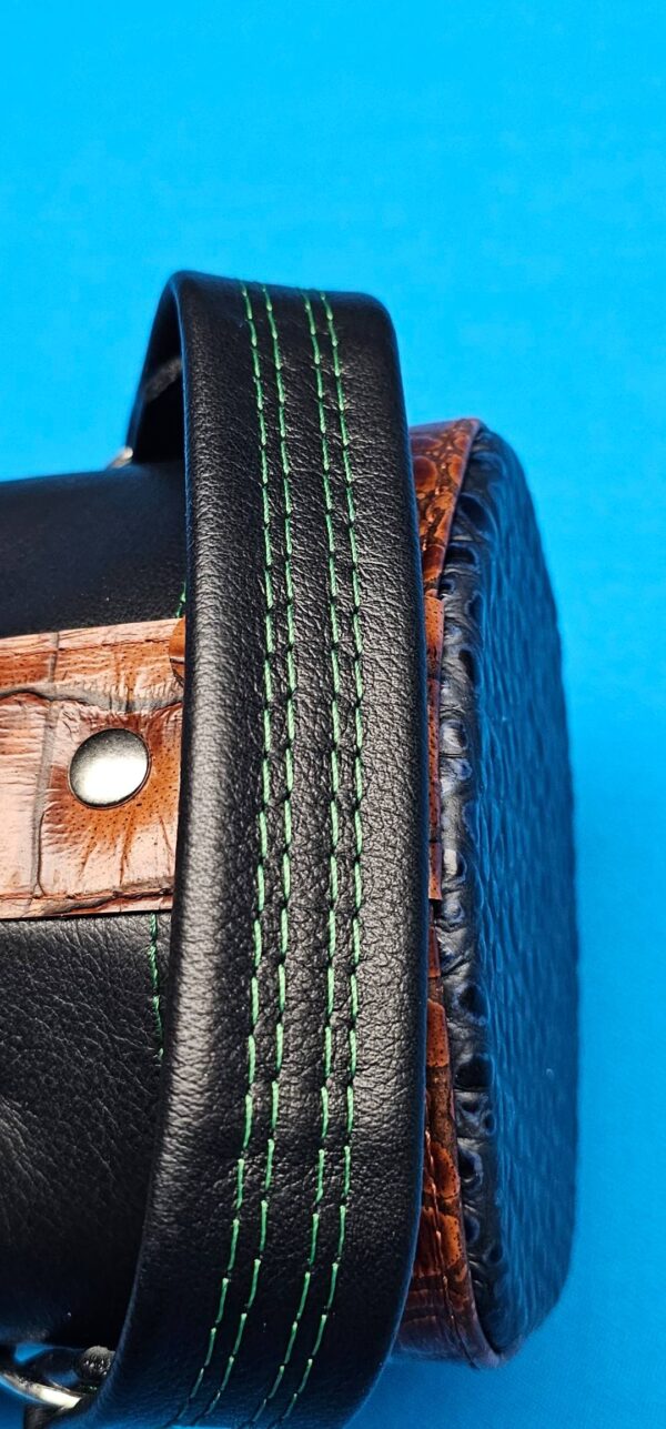 Whitten 3×6 Case – Navy/Spicy Brown w/ Double Green Stitching (#3)