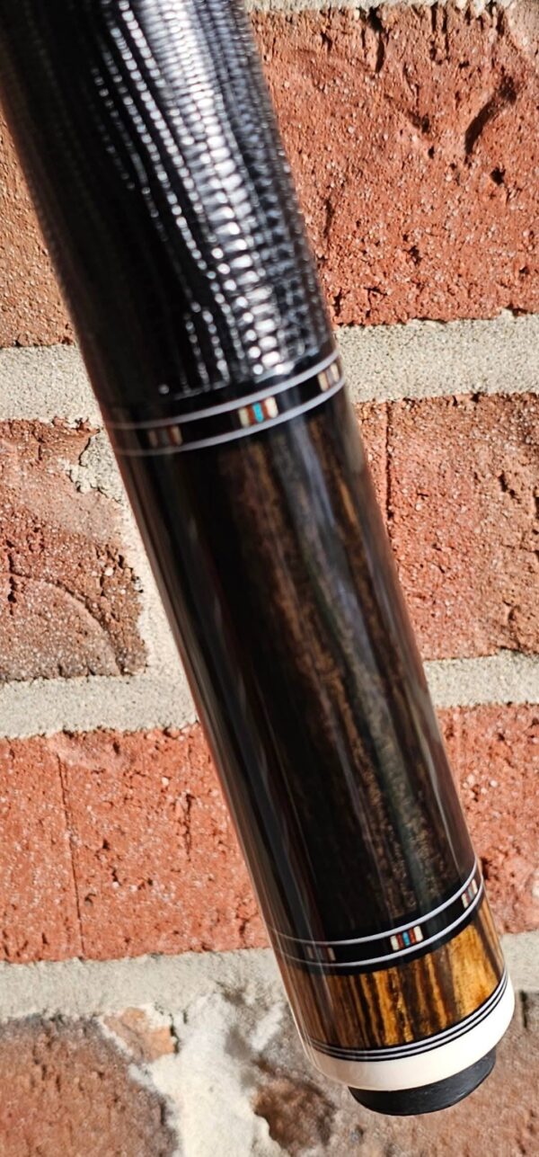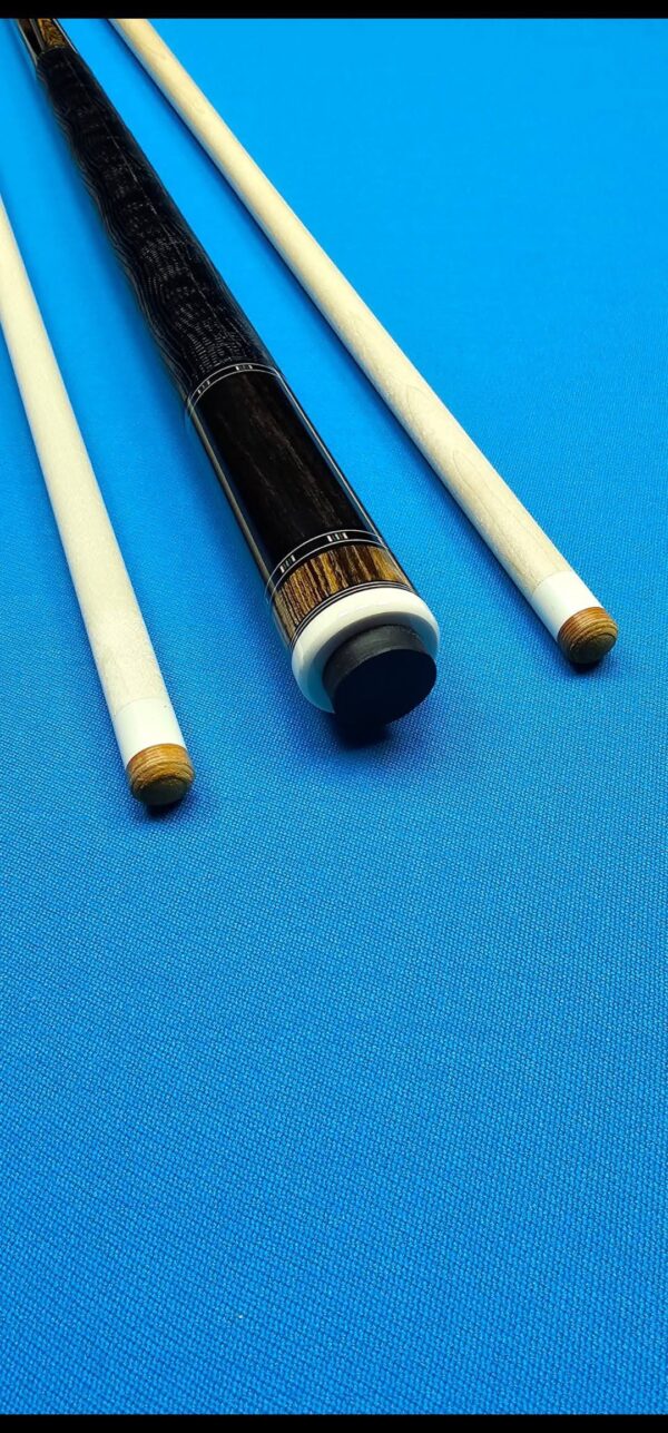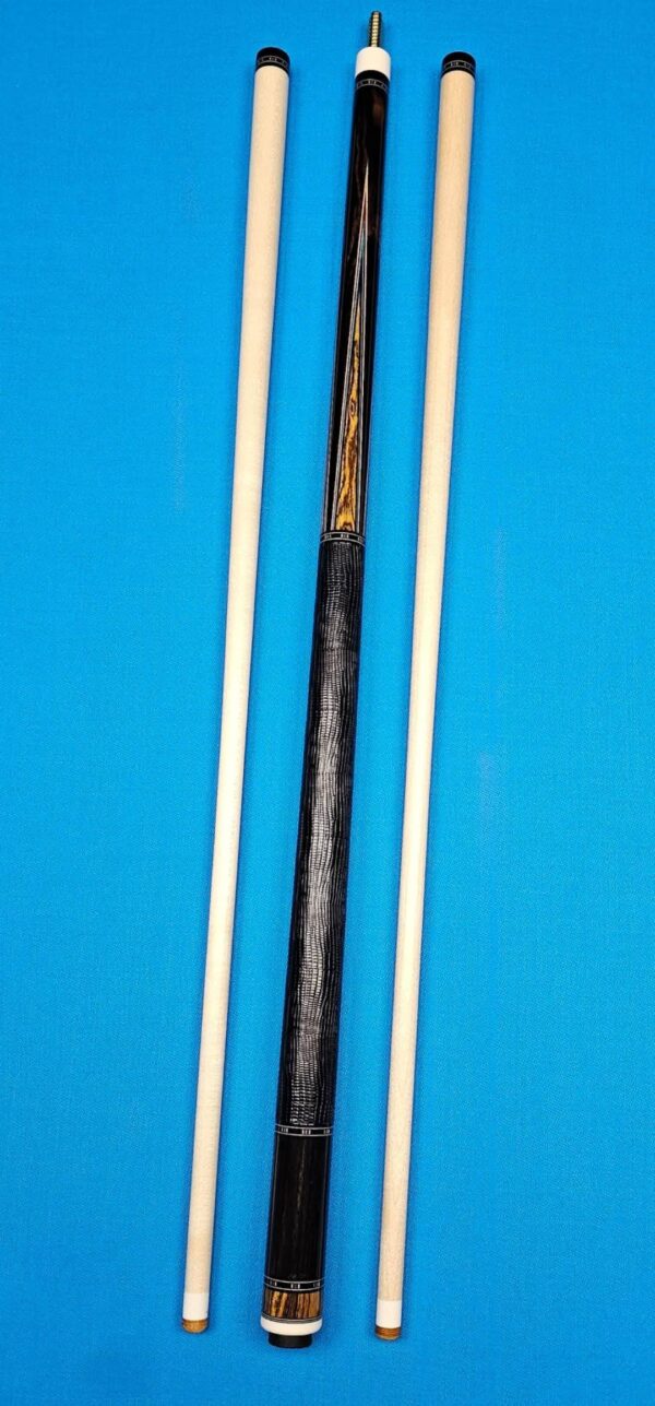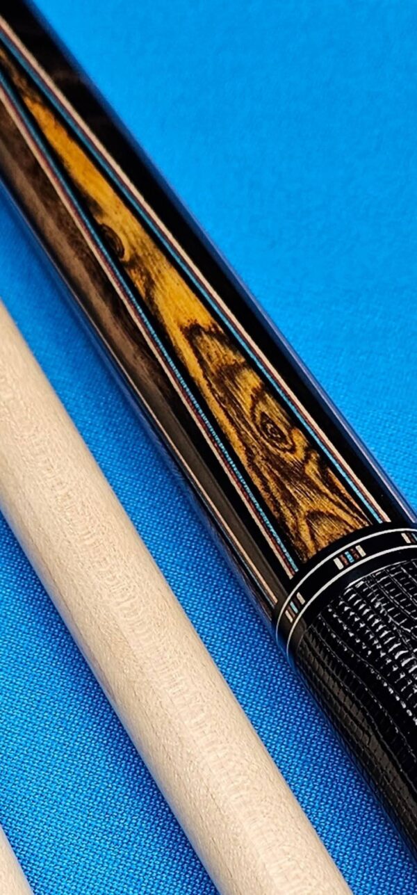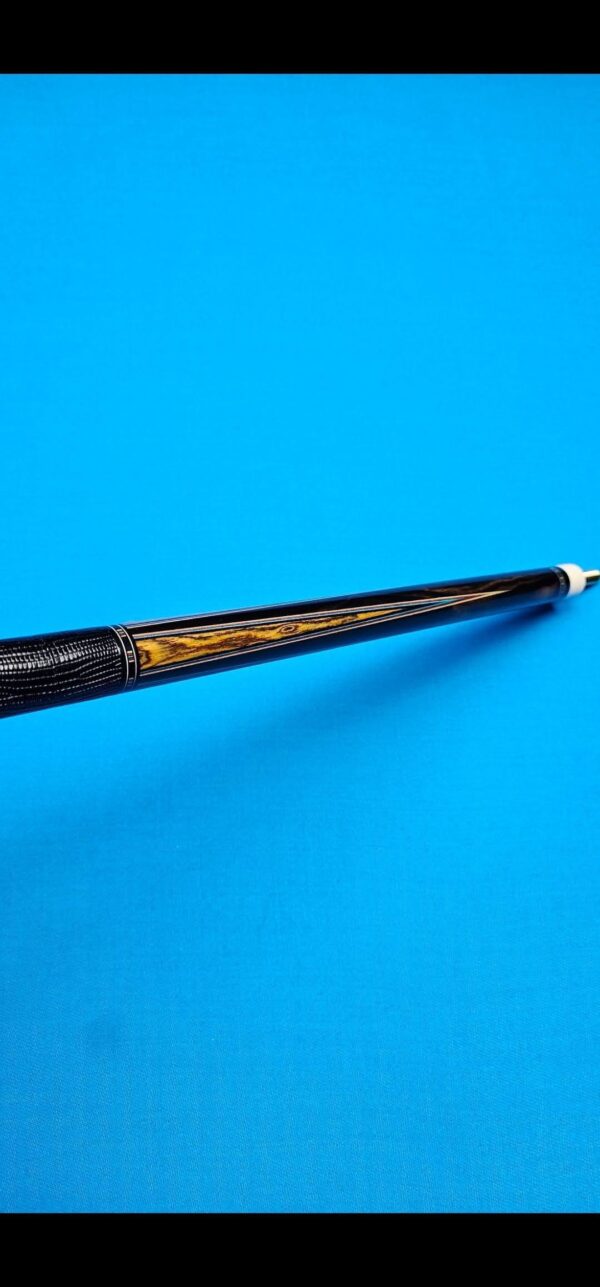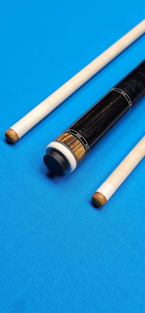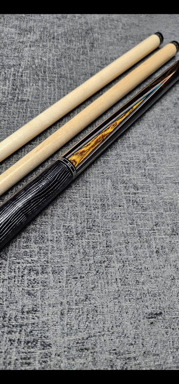 - This cue is in close to new condition! The shafts have been chalked and have had some test hits only! No issues and everything looks like it did the day it rolled out of the shop! Definitely a gorgeous cue made with outstanding woods! The colors all go together perfectly! 100% Satisfaction Guaranteed!