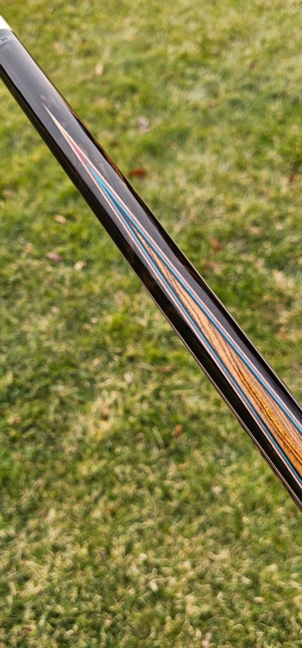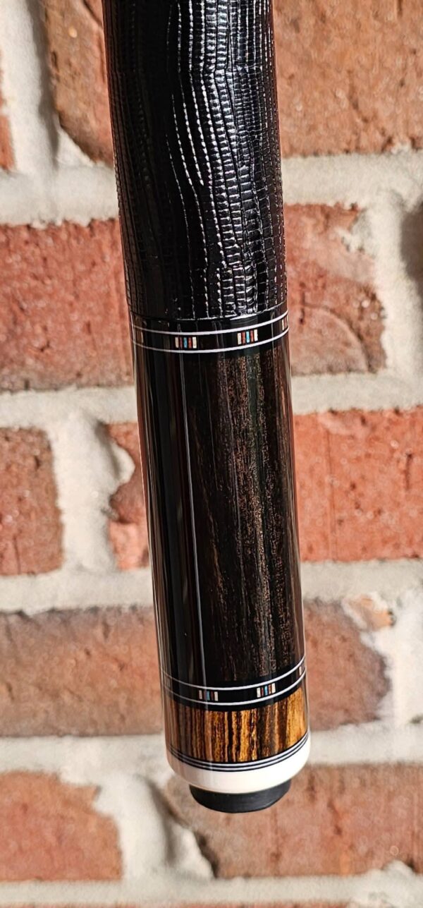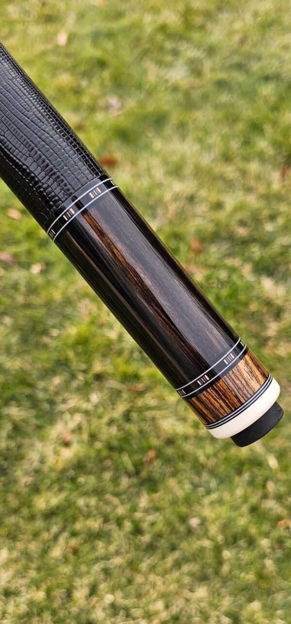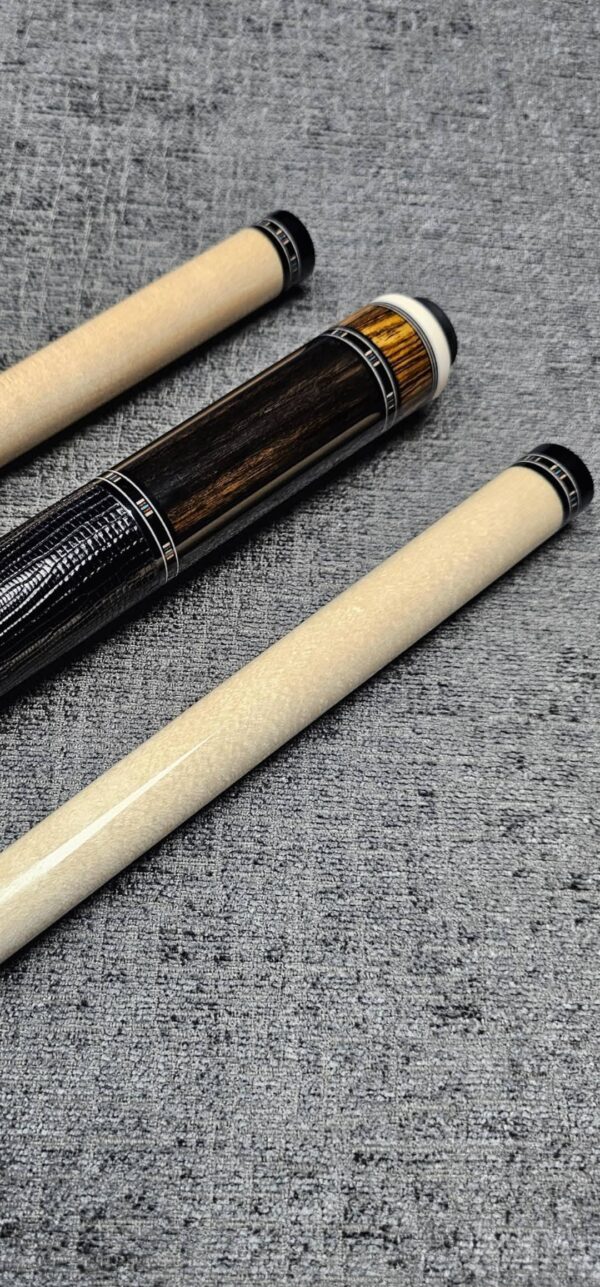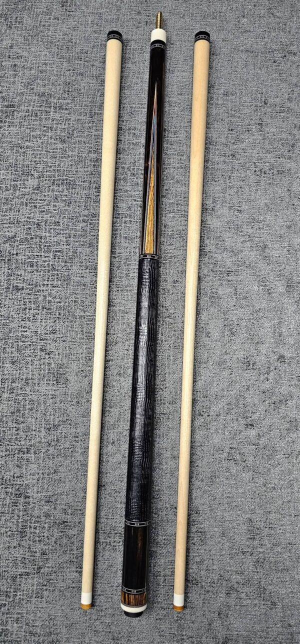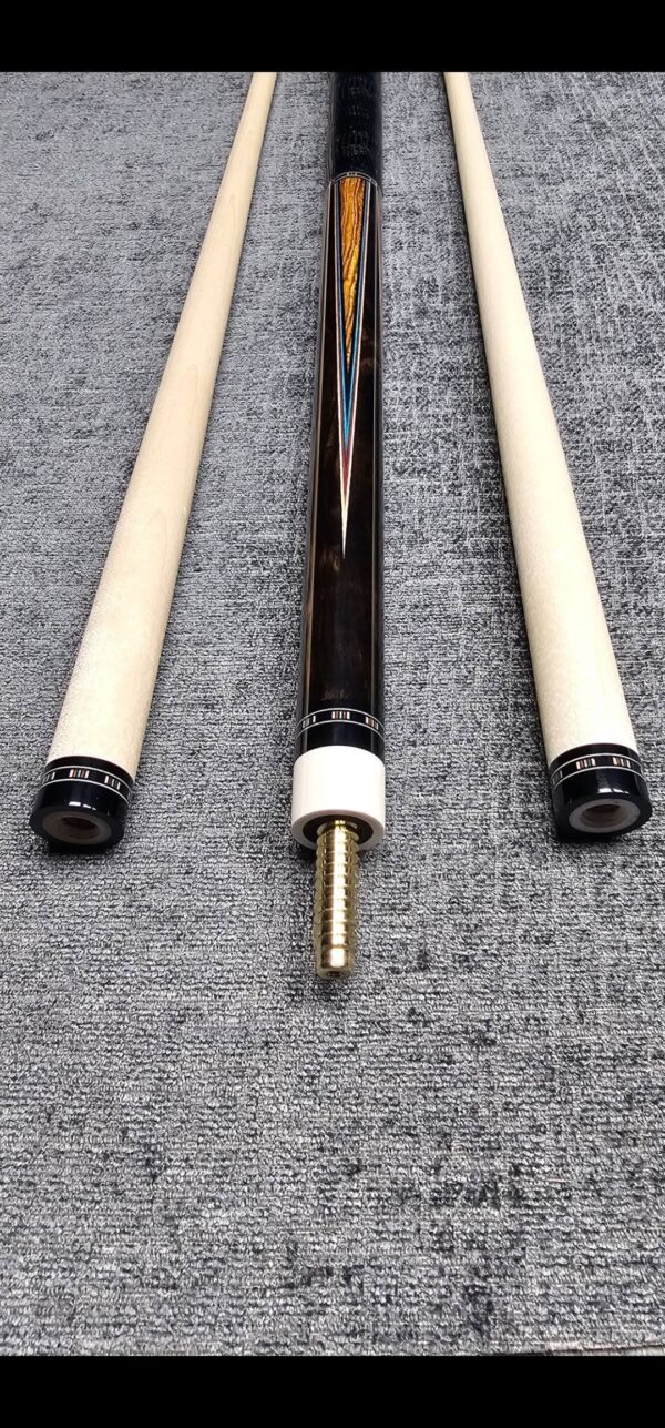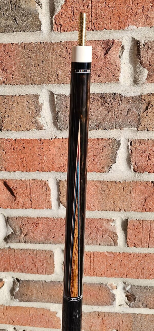 - This cue is in close to new condition! The shafts have been chalked and have had some test hits only! No issues and everything looks like it did the day it rolled out of the shop! Definitely a gorgeous cue made with outstanding woods! The colors all go together perfectly! 100% Satisfaction Guaranteed!
