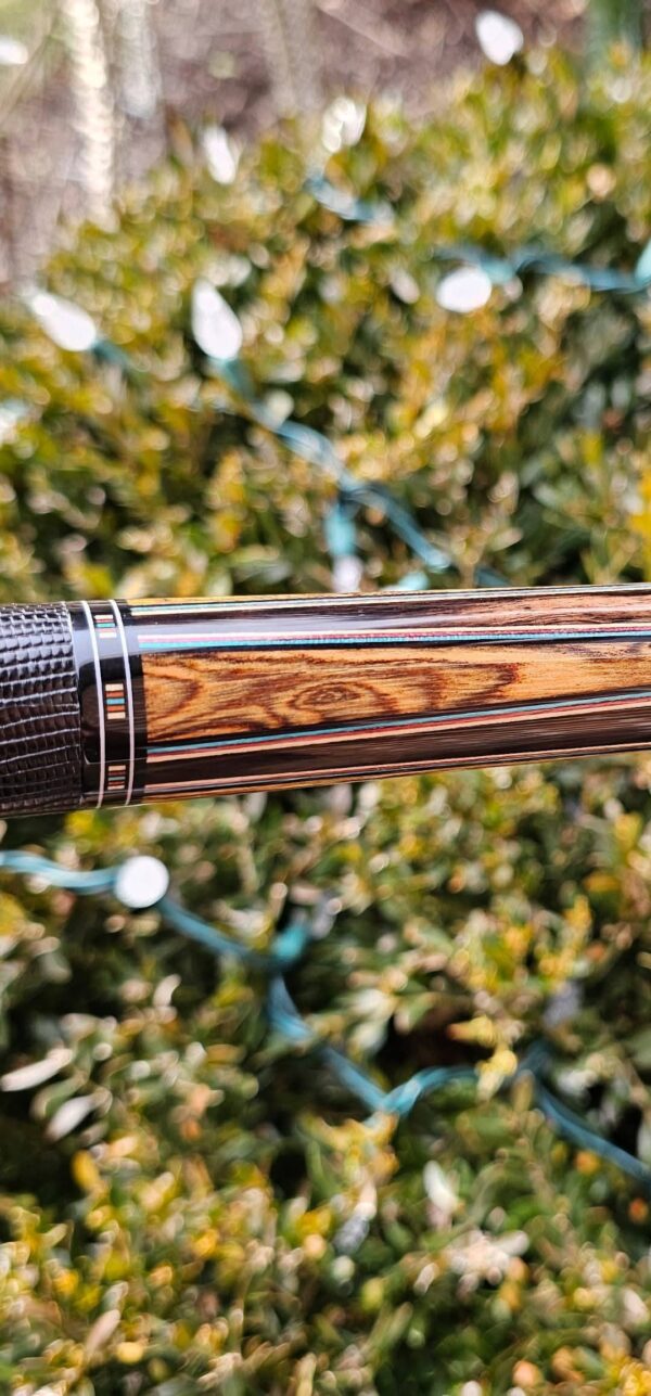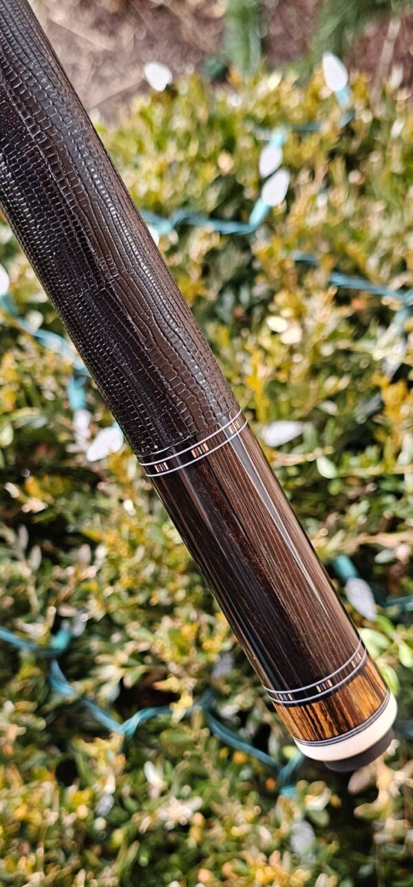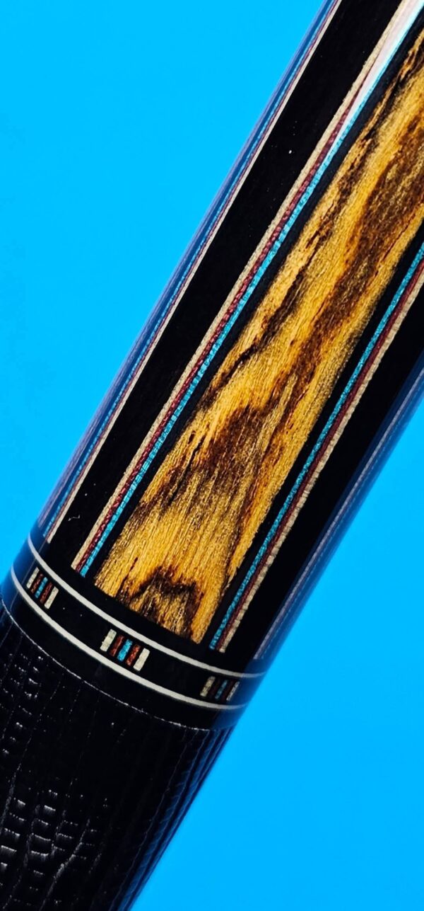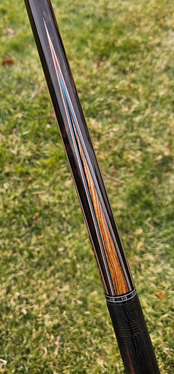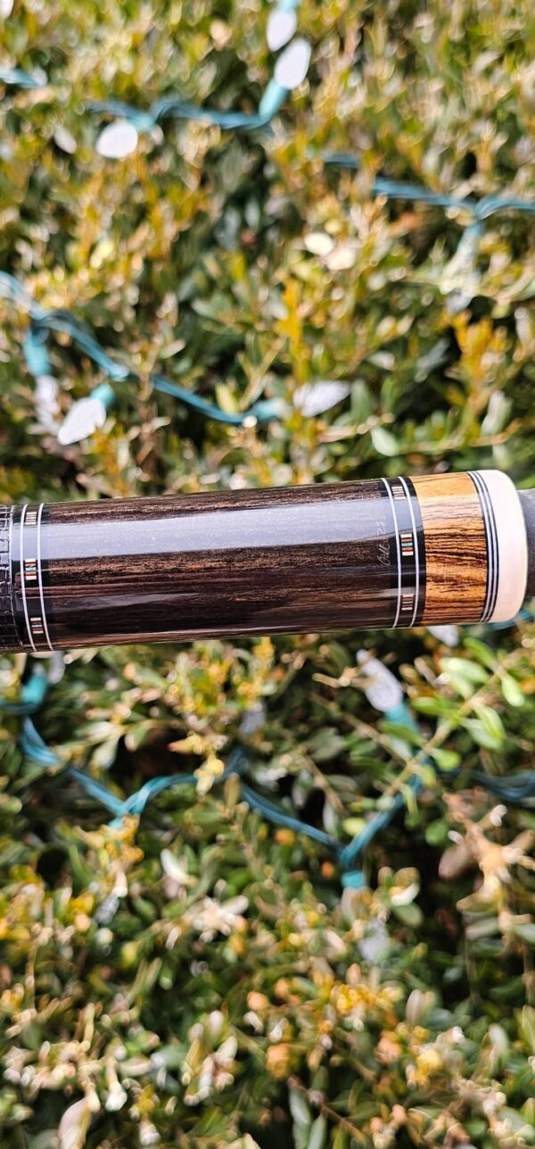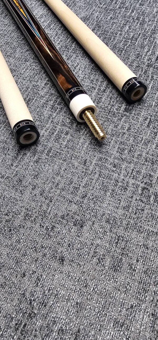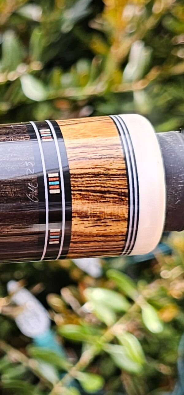 - This cue is in close to new condition! The shafts have been chalked and have had some test hits only! No issues and everything looks like it did the day it rolled out of the shop! Definitely a gorgeous cue made with outstanding woods! The colors all go together perfectly! 100% Satisfaction Guaranteed!