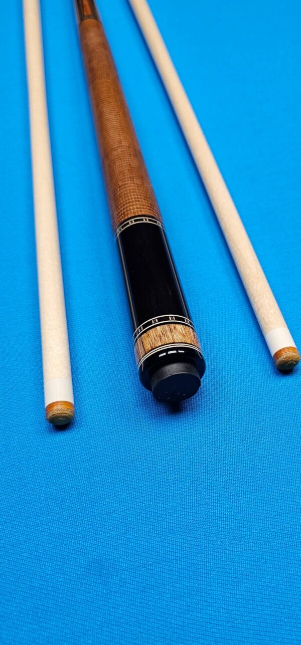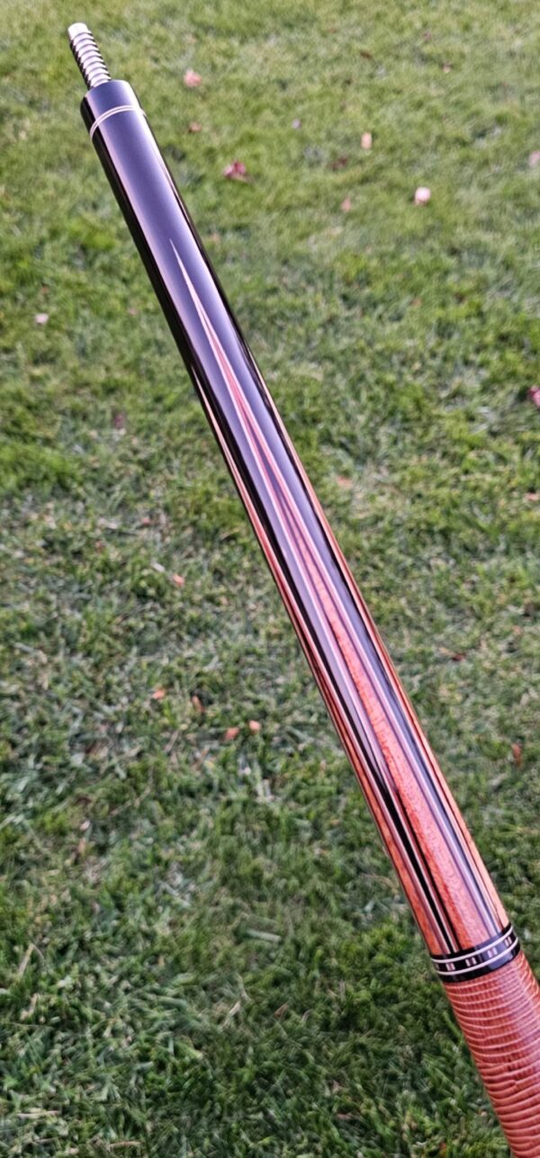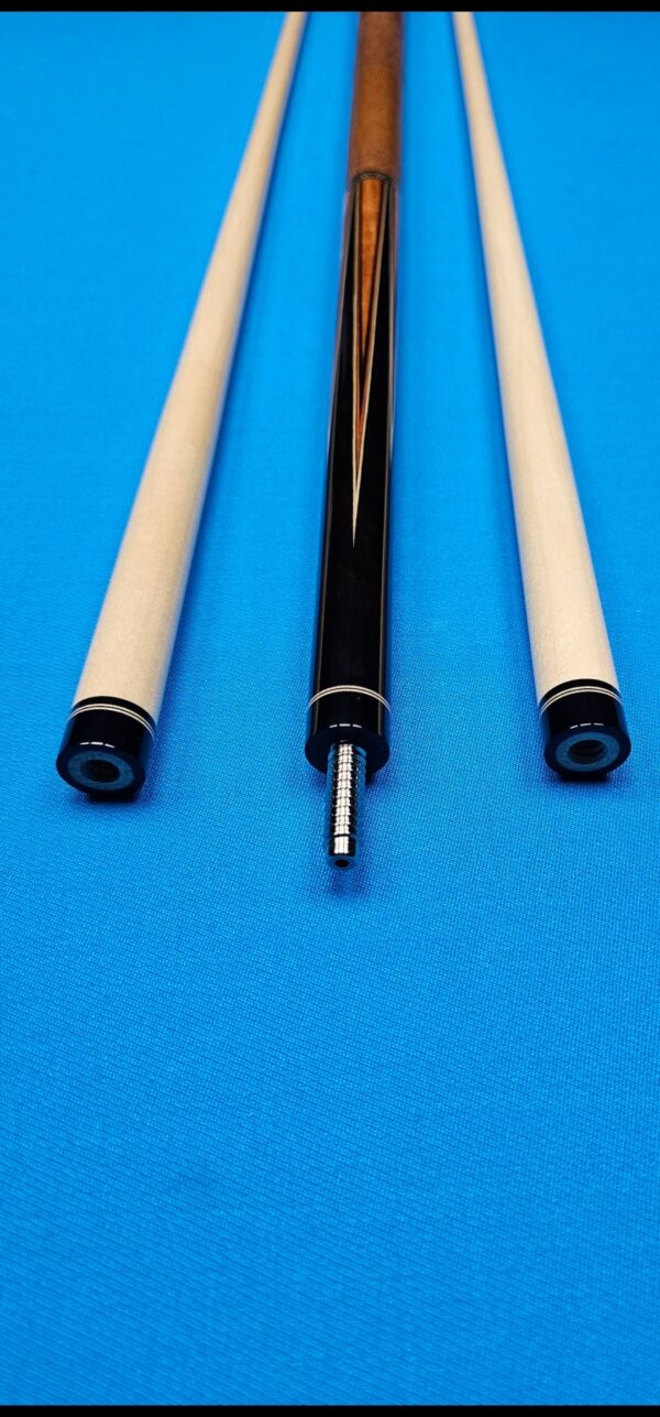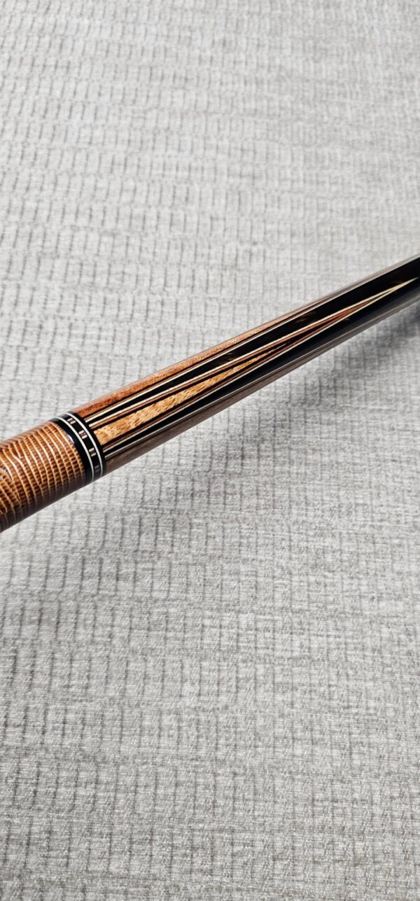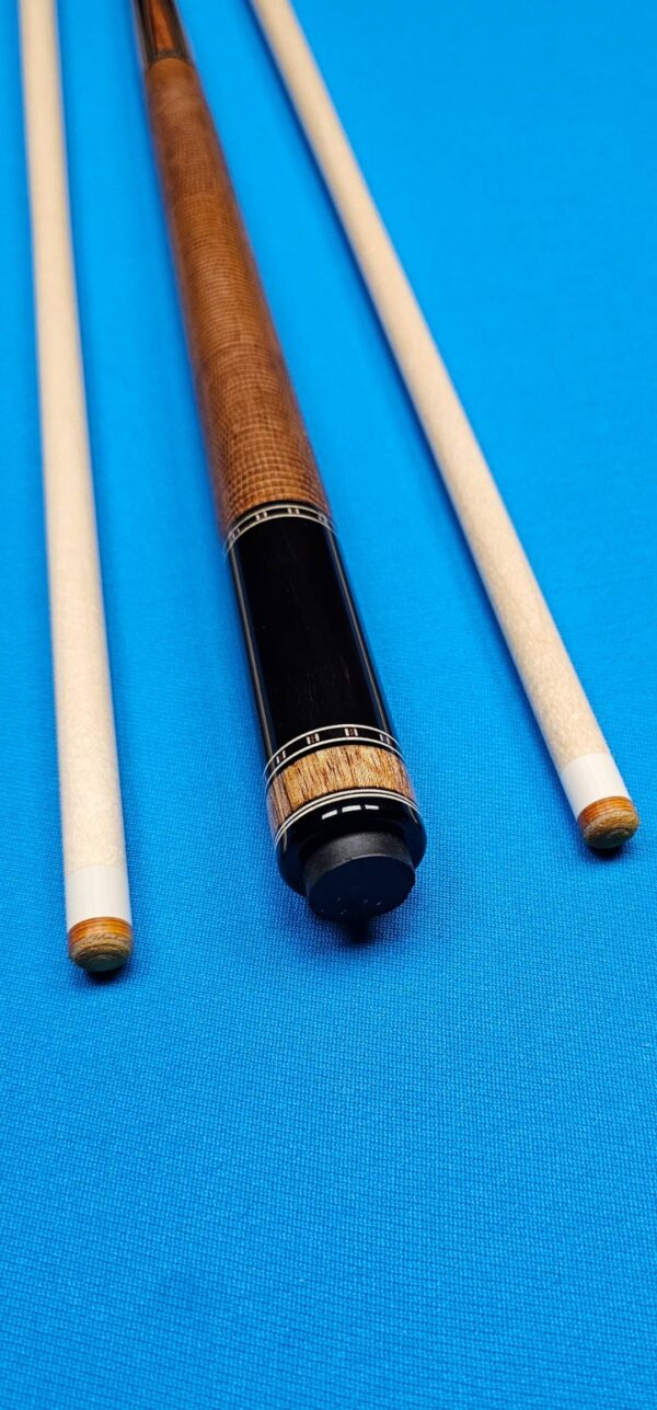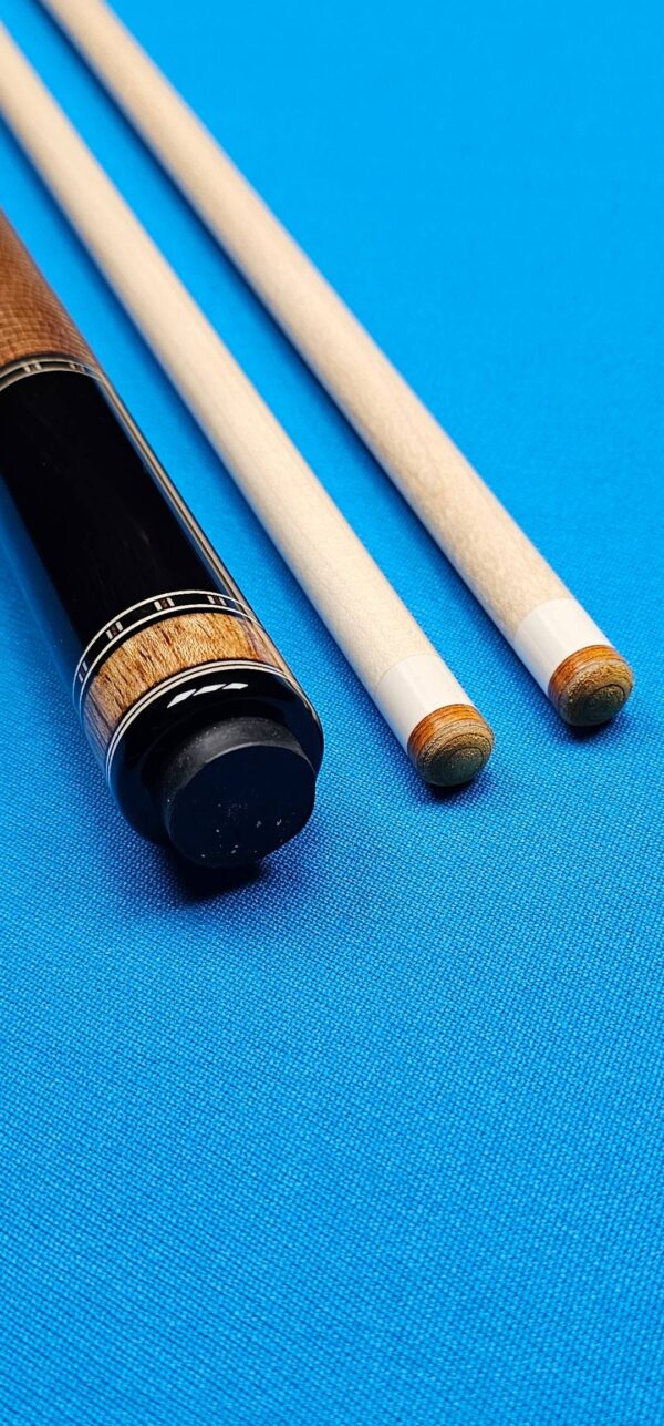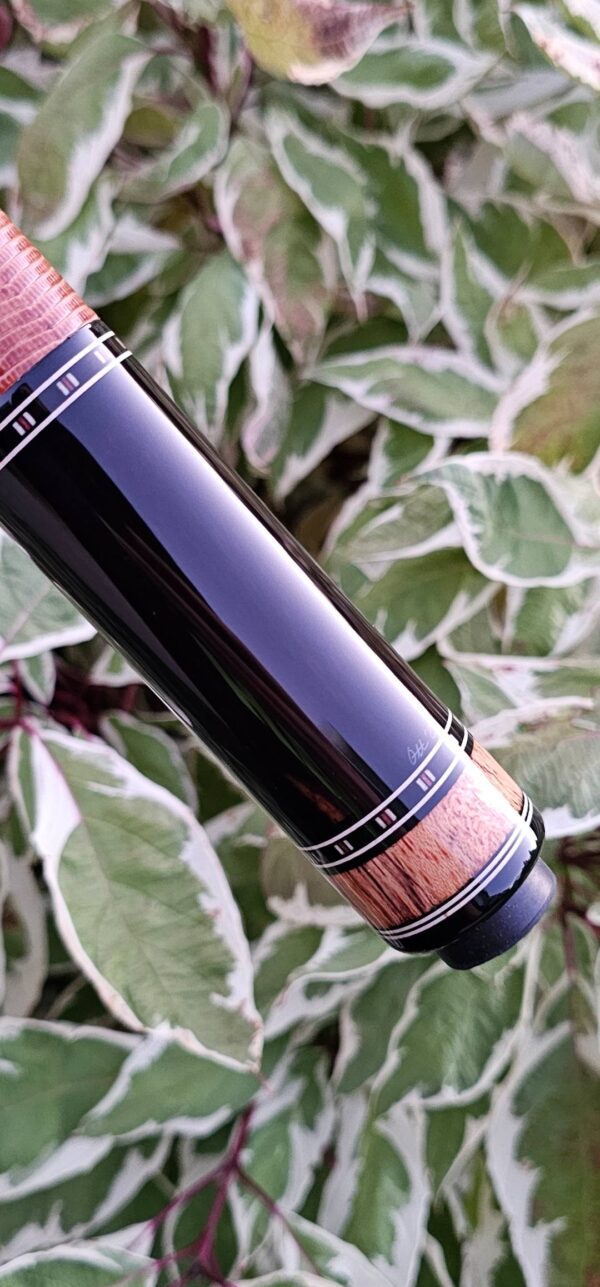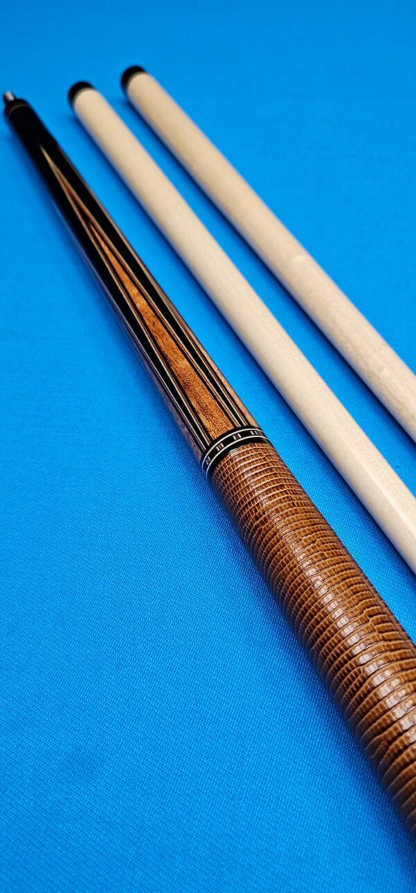Before we began this cuemaking journey, we were pool players, first and foremost. So, although we go to great lengths to create a cue that is pleasing to the eye, we fully intend for each of our cues to see action on the table. We design and construct our cues to perform at the highest level, as well as to provide solid, pleasant and predictable feedback on every shot. Our cues have a slight forward balance that feels very natural at the table. Our shafts have a modified Pro Taper and short ferrule combination developed over 2 years of testing to produce a classic medium-firm hit while retaining excellent deflection characteristics.