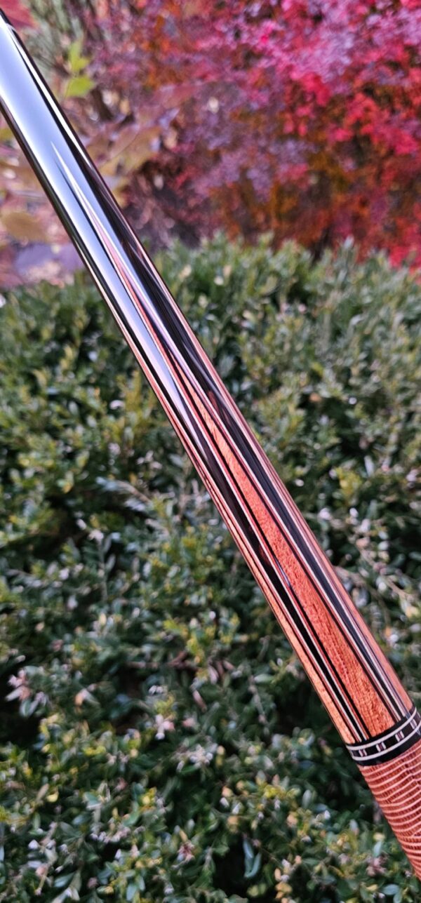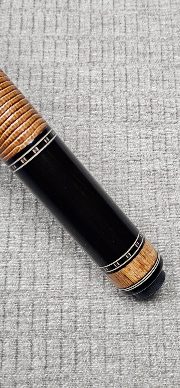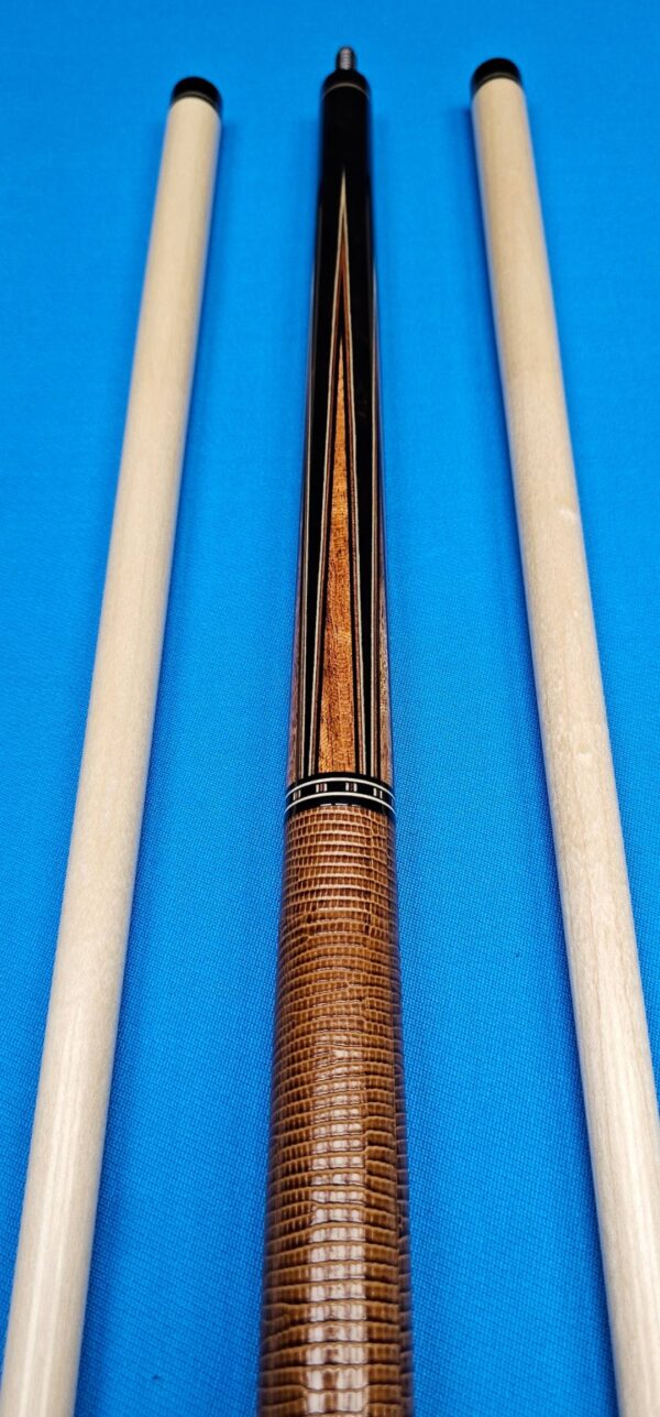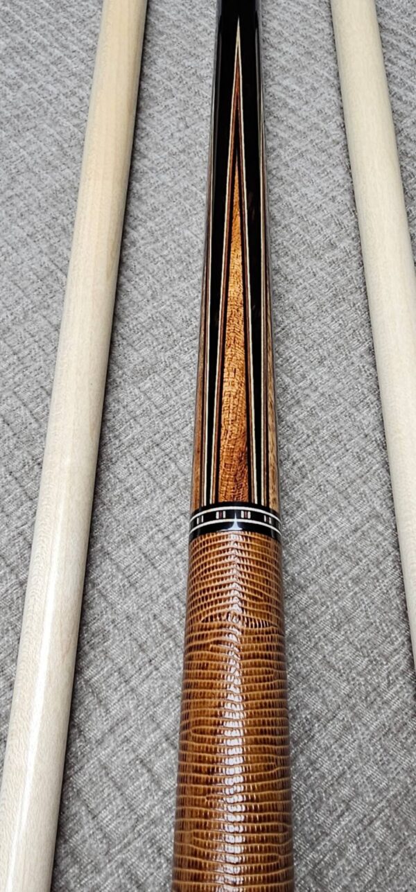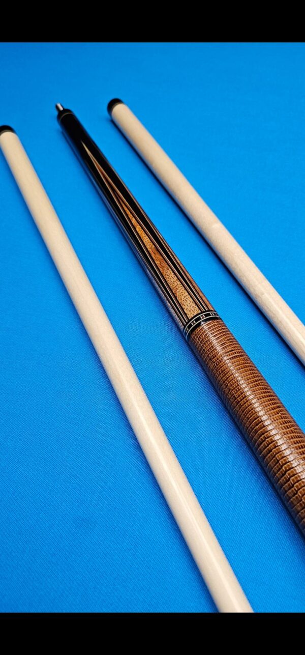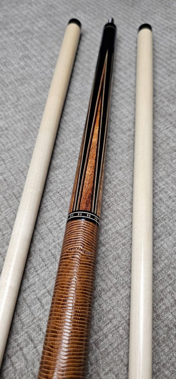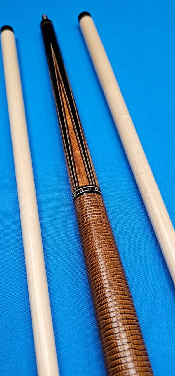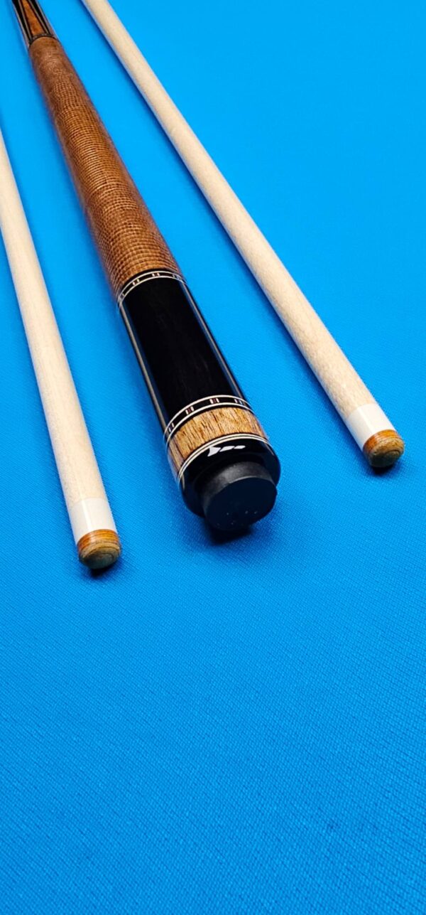 Before we began this cuemaking journey, we were pool players, first and foremost. So, although we go to great lengths to create a cue that is pleasing to the eye, we fully intend for each of our cues to see action on the table. We design and construct our cues to perform at the highest level, as well as to provide solid, pleasant and predictable feedback on every shot. Our cues have a slight forward balance that feels very natural at the table. Our shafts have a modified Pro Taper and short ferrule combination developed over 2 years of testing to produce a classic medium-firm hit while retaining excellent deflection characteristics.