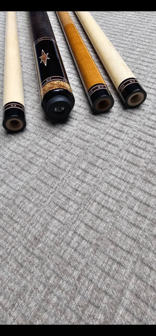 - Besides the chalk on the tips and a few marks on the ferrule of the Kielwood, everything looks as good as new all the way around! This is a killer player SET-UP!