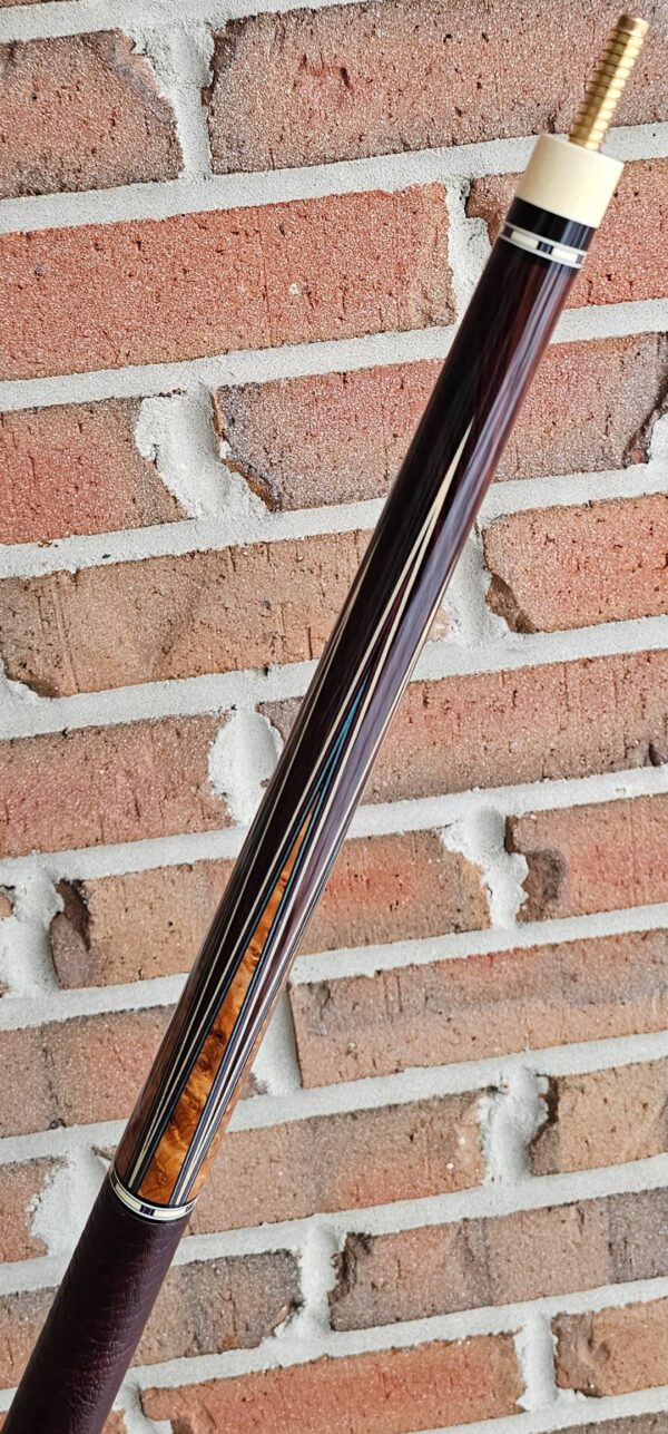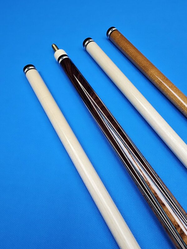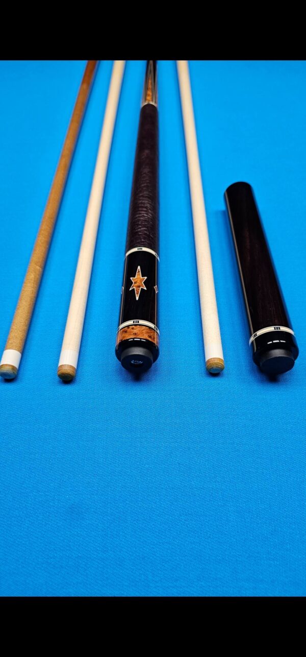 - SET-UP built directly from the Ott Custom Cues shop as a special order. He added alot of upgrades including the premium woods, high performance Kielwood shaft, and the matching extension….. It has only had some test hits and looks as good as the day it rolled off of the lathe!