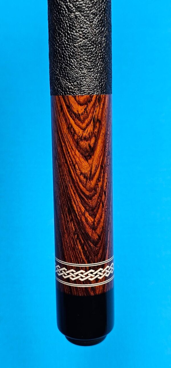 - Rick added a special inlay design pattern at the base of the cue made from natural white!