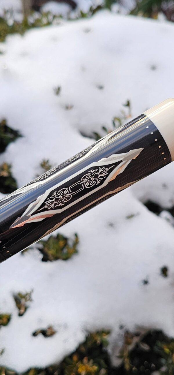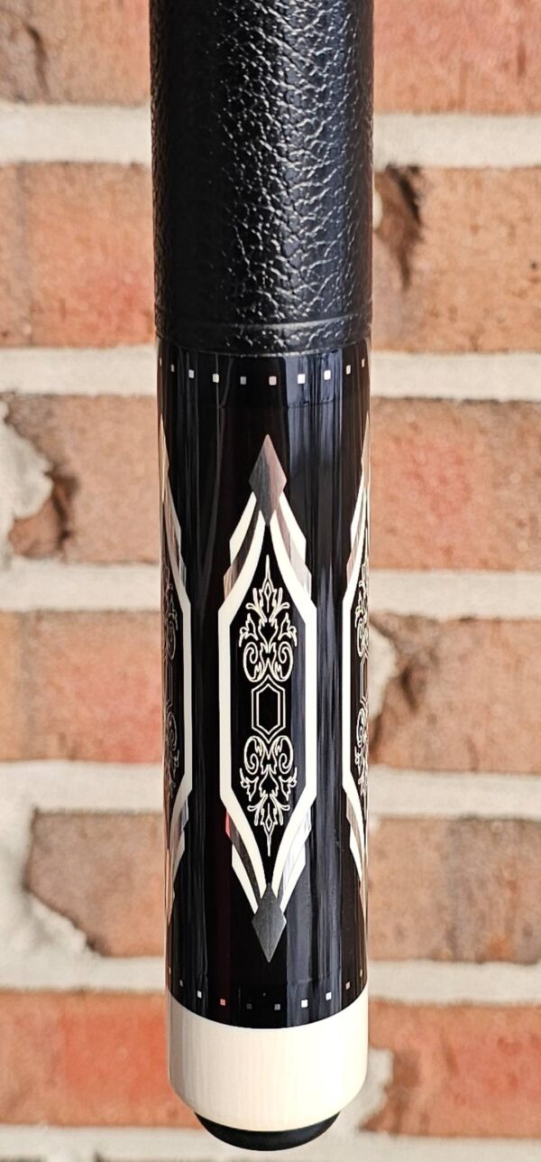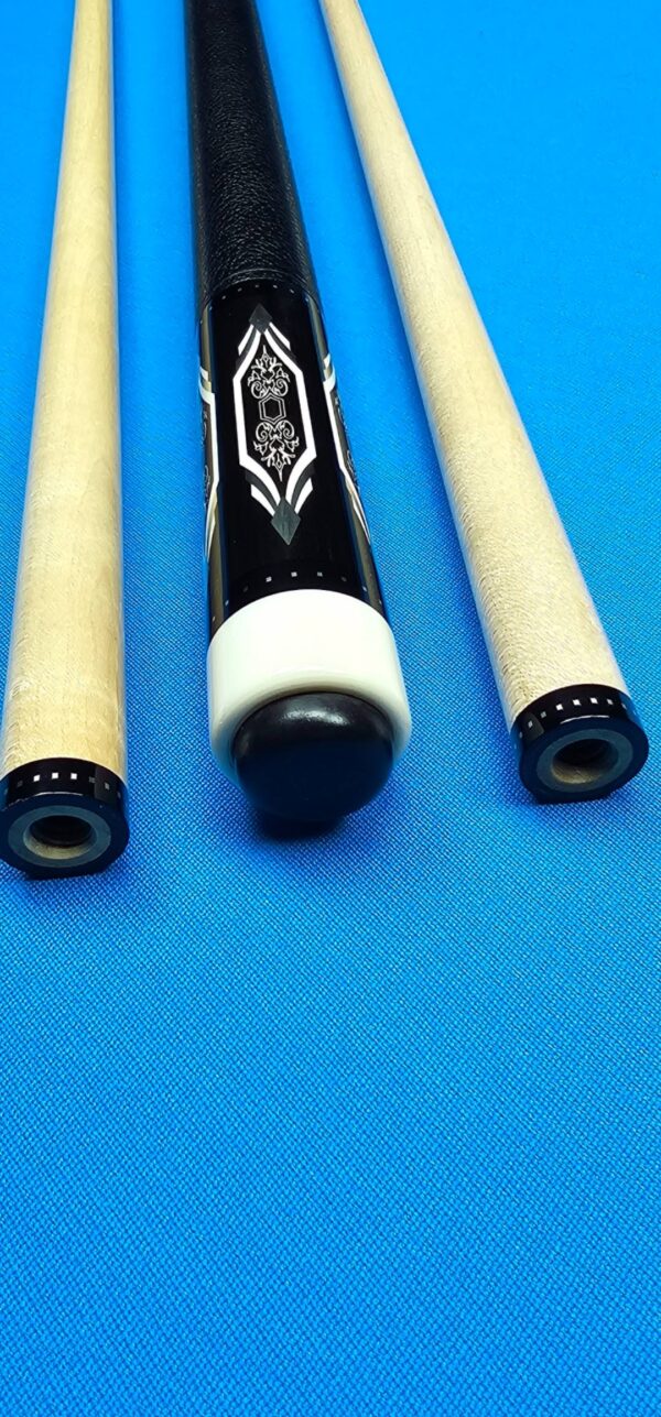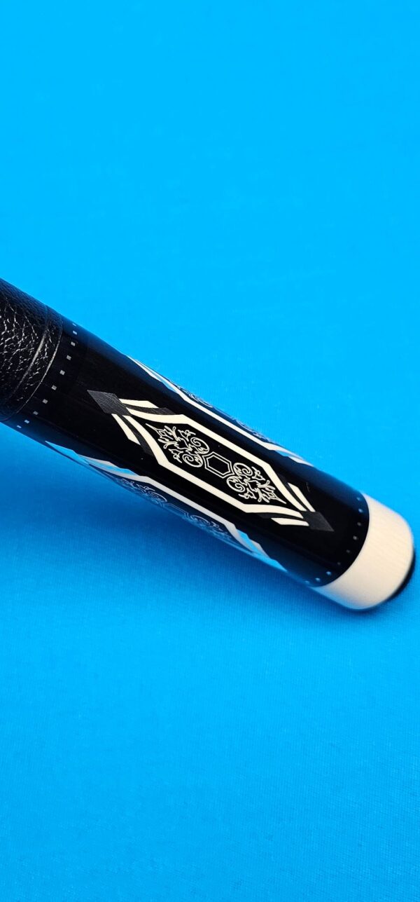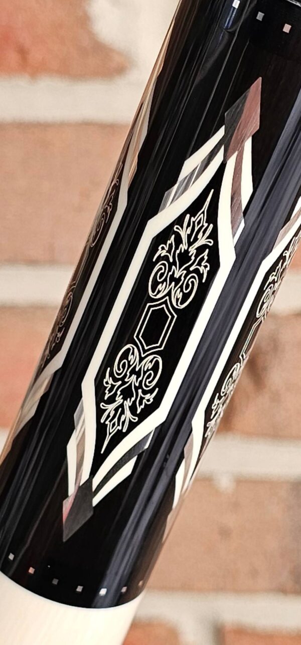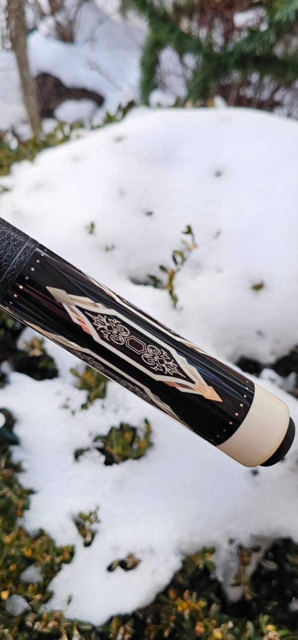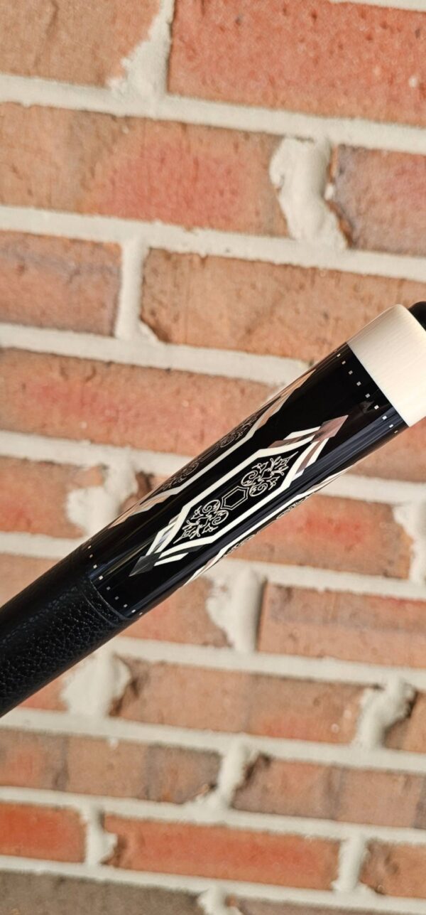 - The joint, inlays, veneers, butt cap, & ferrules are all natural material. The silver work is awesome in person! There is nothing like a black & white cue that is loaded up with silver!