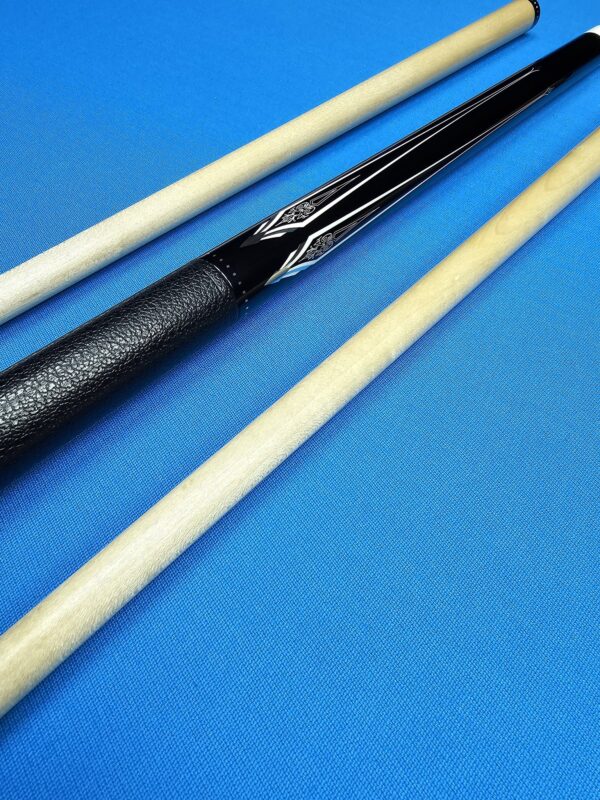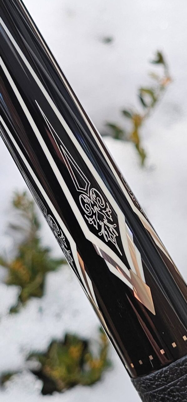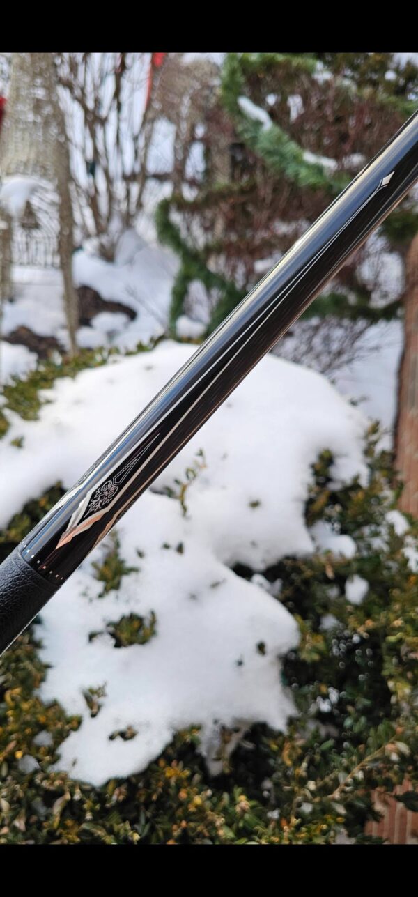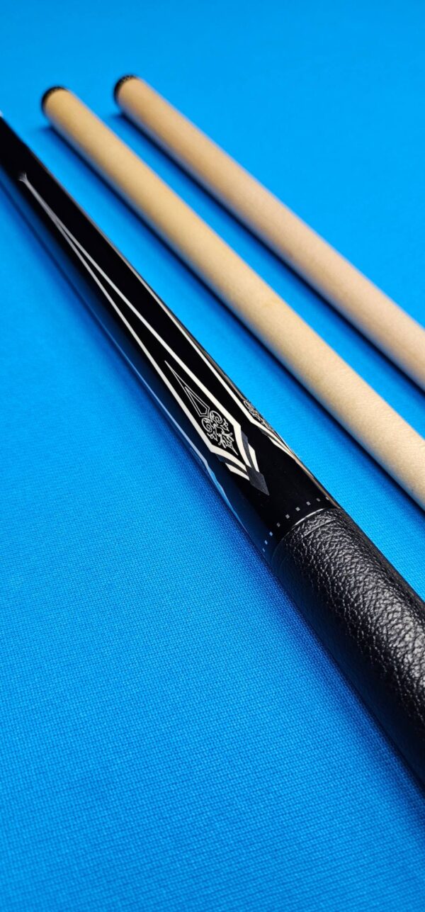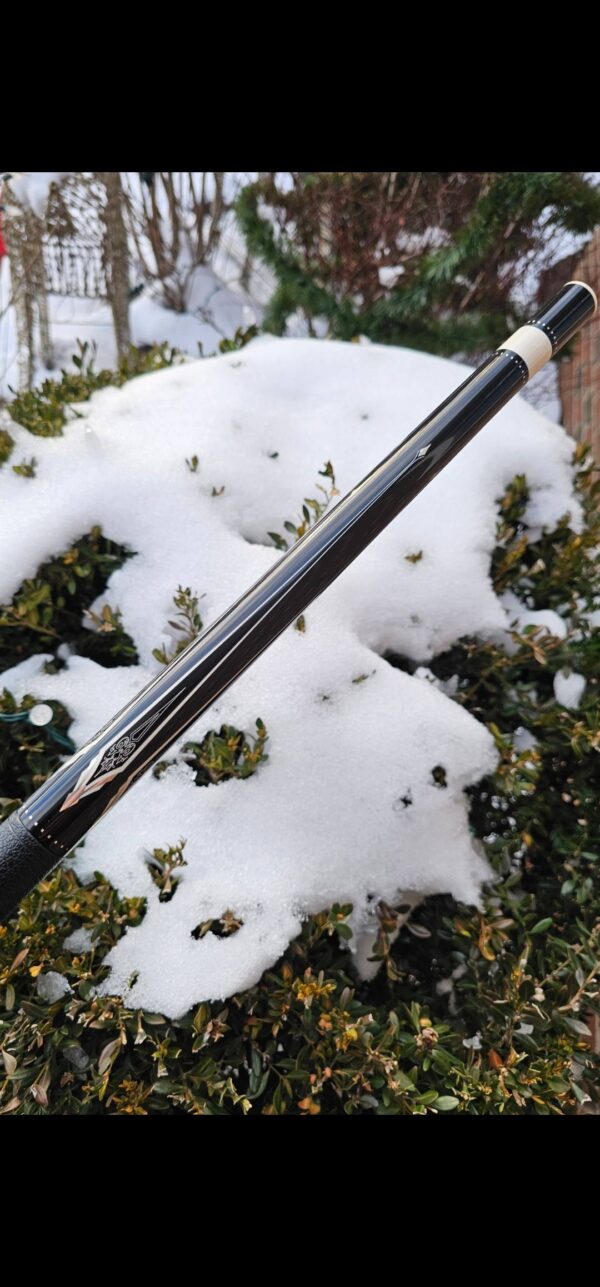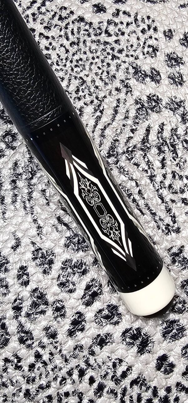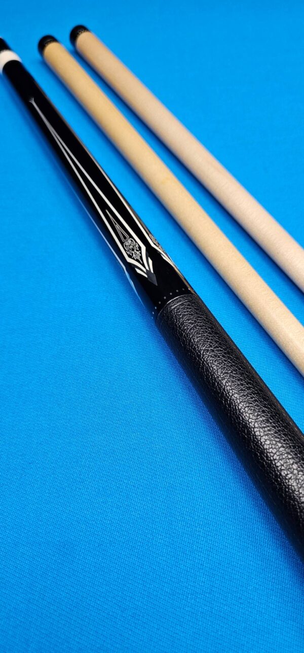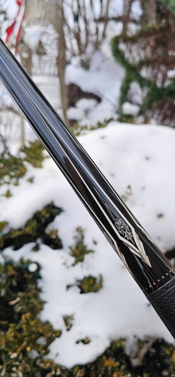 - The joint, inlays, veneers, butt cap, & ferrules are all natural material. The silver work is awesome in person! There is nothing like a black & white cue that is loaded up with silver!