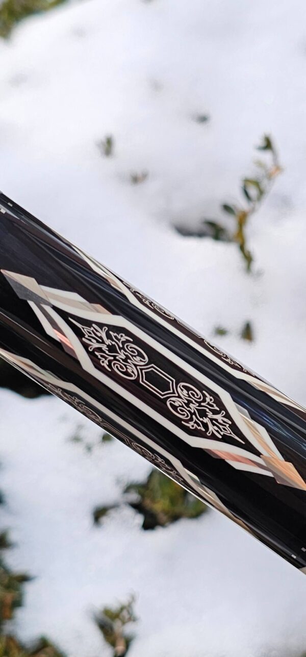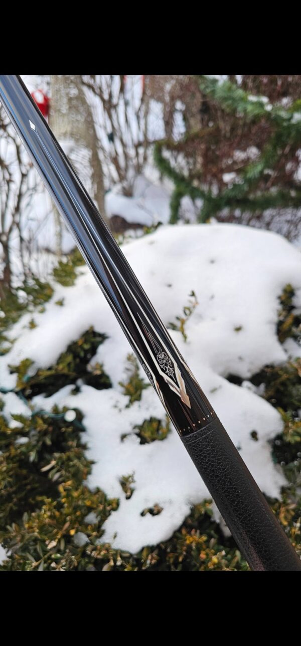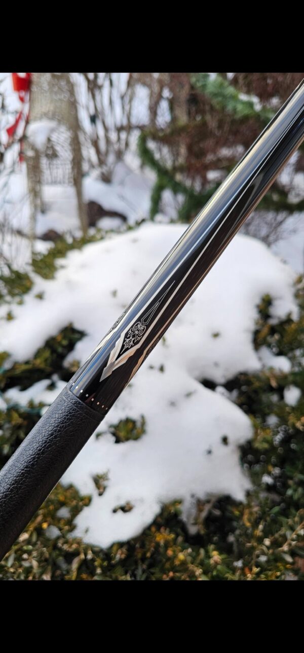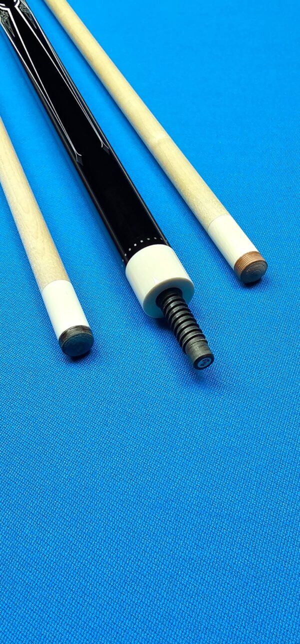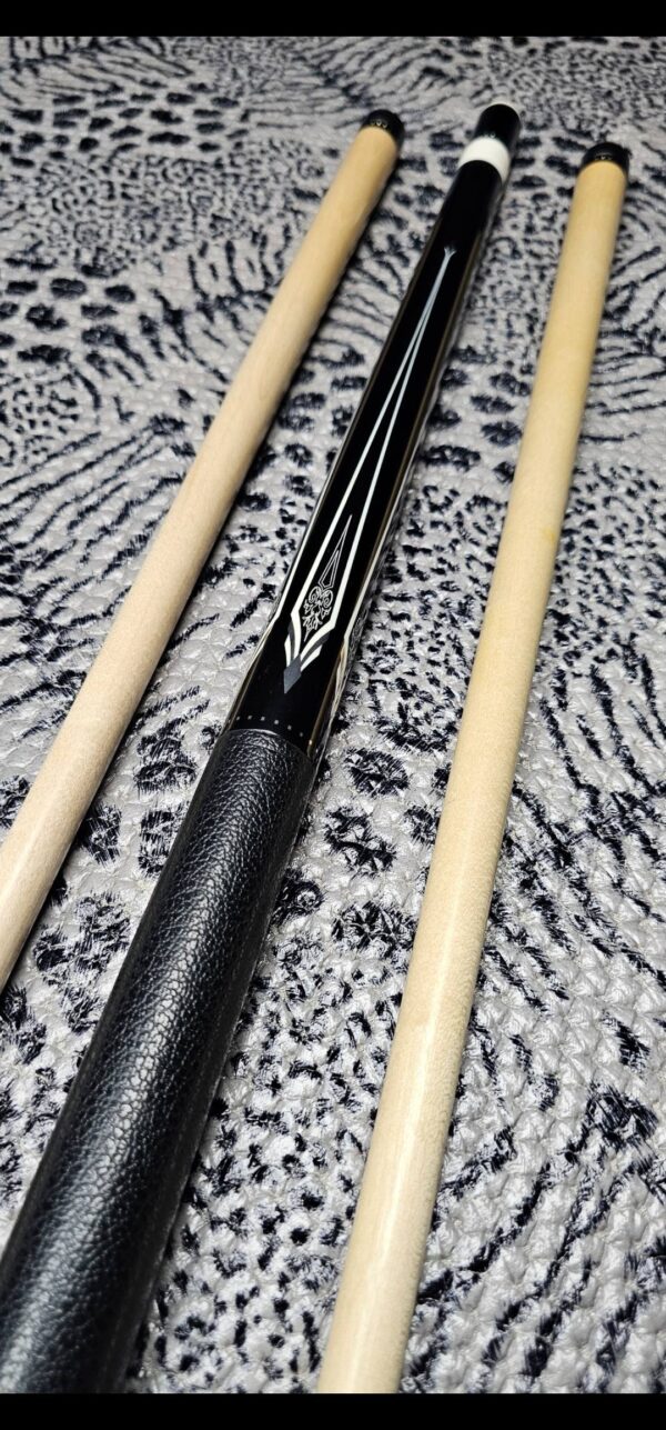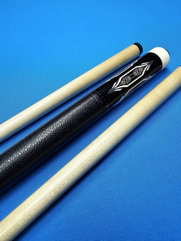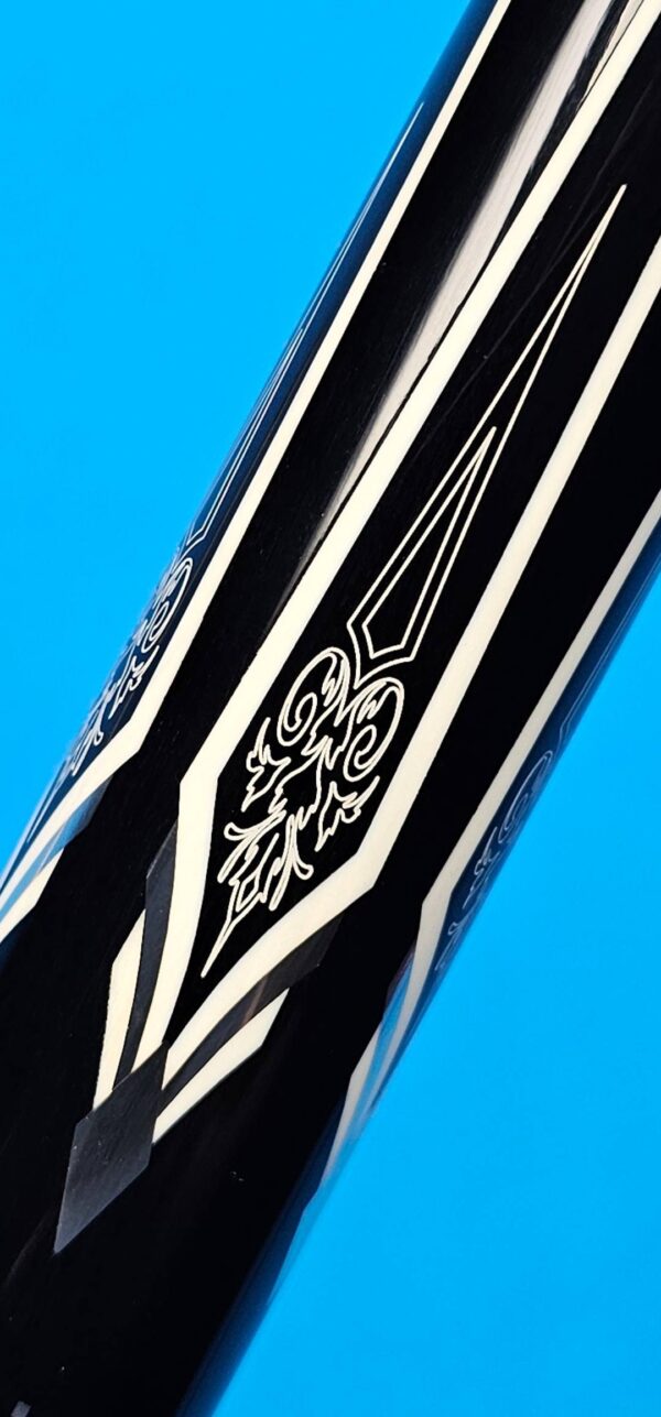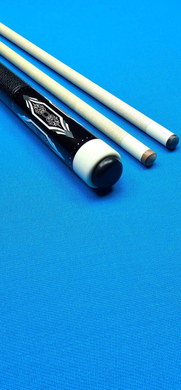 - The joint, inlays, veneers, butt cap, & ferrules are all natural material. The silver work is awesome in person! There is nothing like a black & white cue that is loaded up with silver!