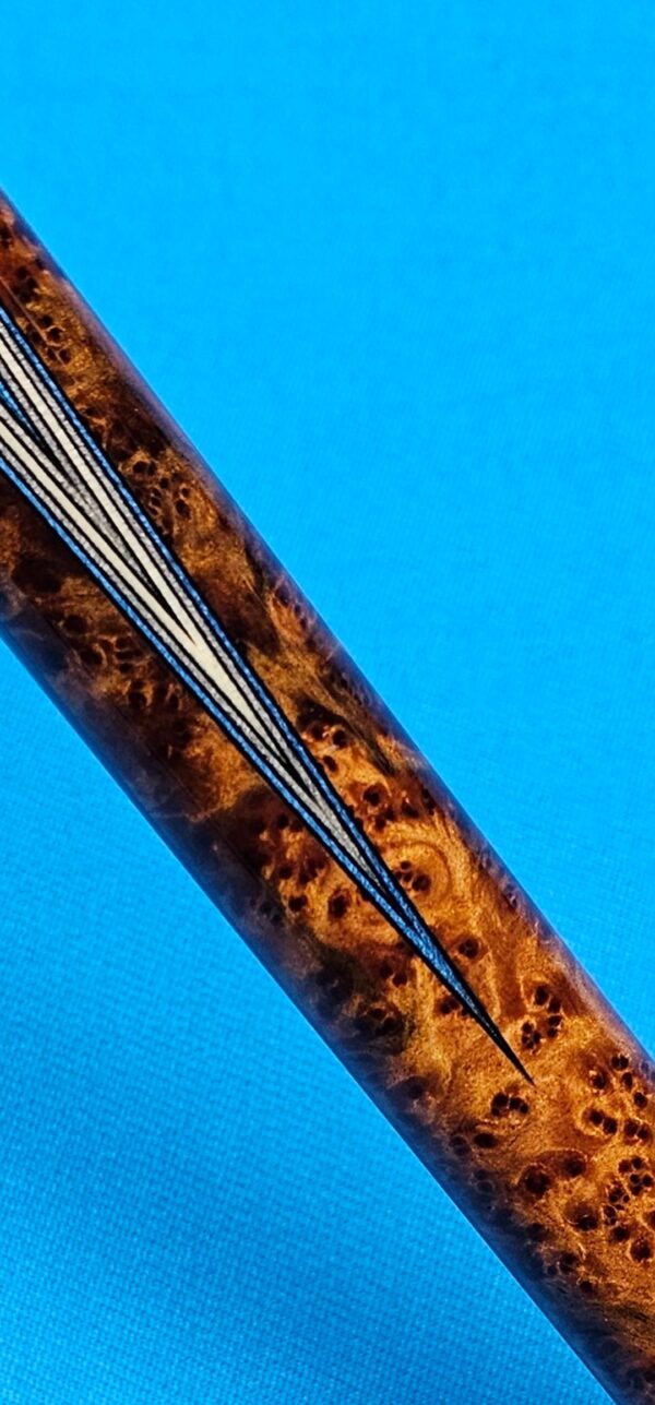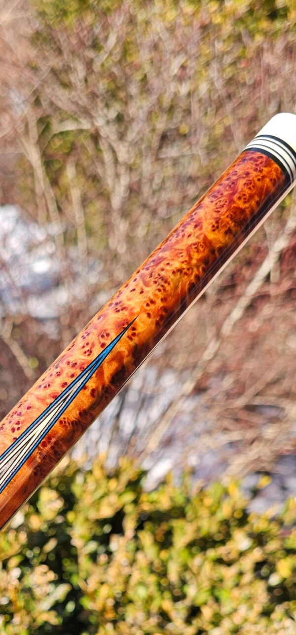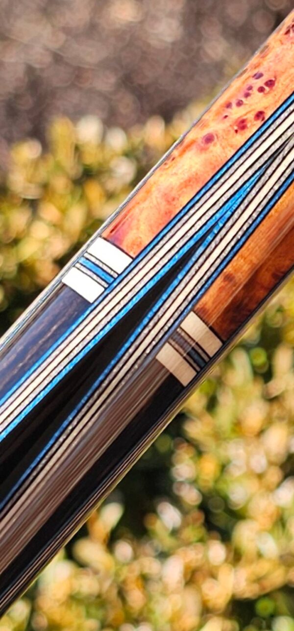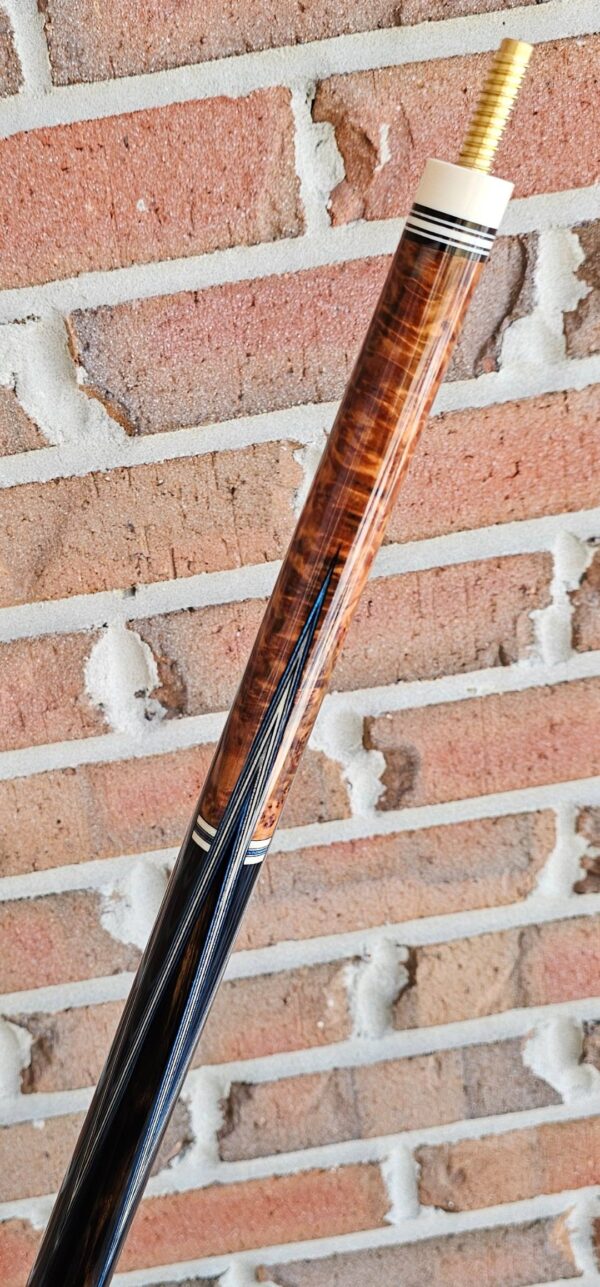 - Incredibly figured Fire Amboyna Burl nose / Gabon Ebony points & “Slick Handle!”