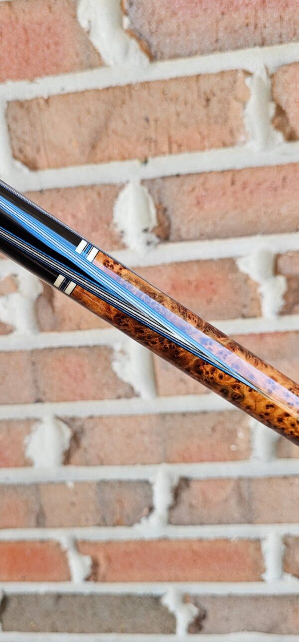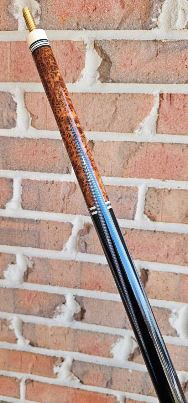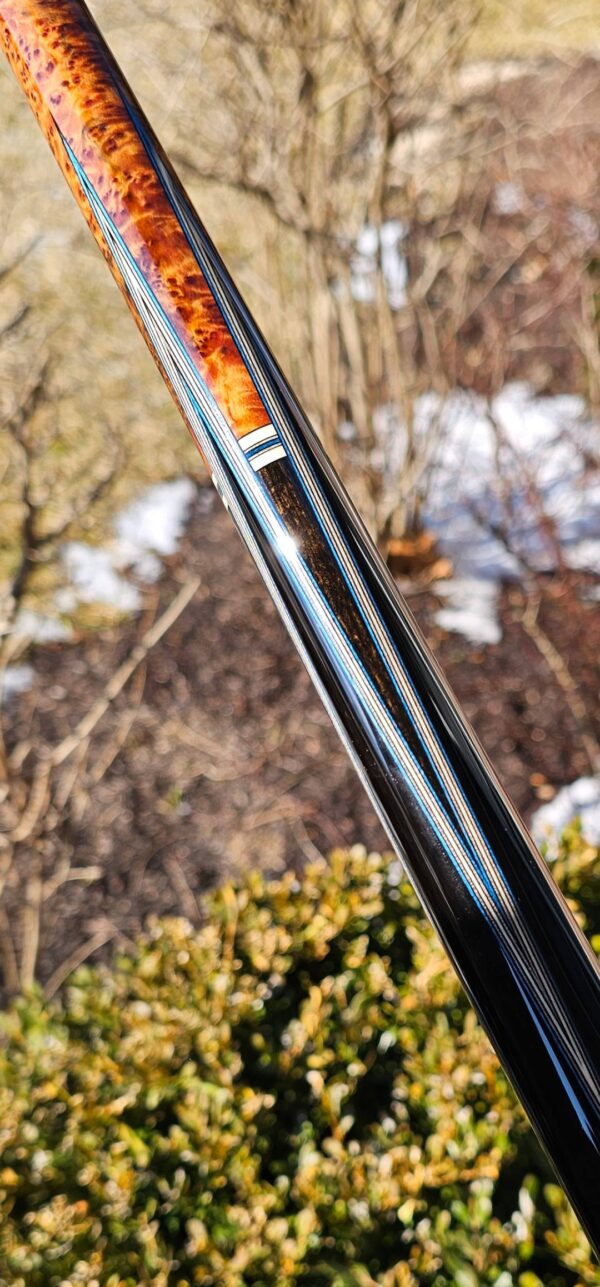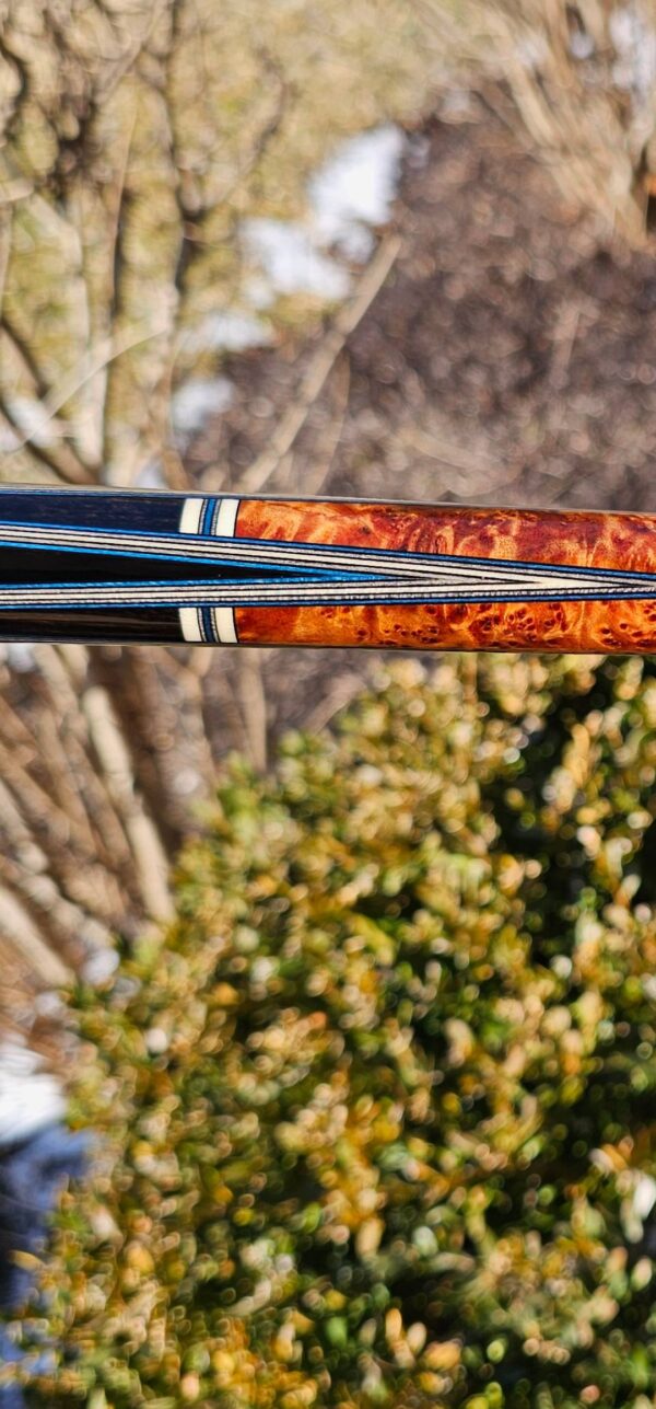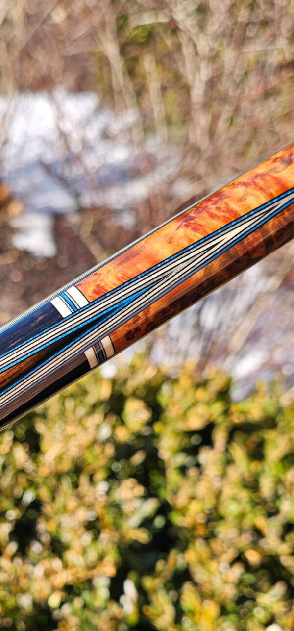 - Incredibly figured Fire Amboyna Burl nose / Gabon Ebony points & “Slick Handle!”
