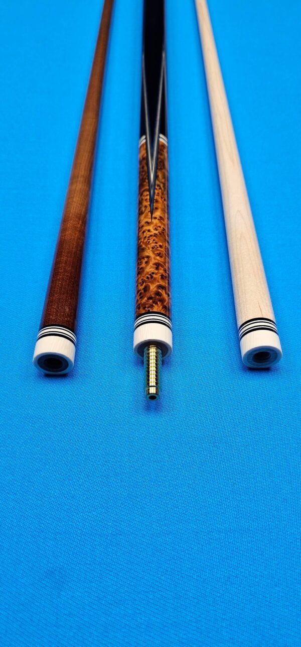 - Very close to new condition!!! Very few signs of play! Besides a couple “tiny” marks on the bottom of the butt cap, everything looks as good as it did the day it rolled out of the shop! Nice straight cue together and apart! This one plays so good you won’t want to put it down!Satisfaction Guaranteed!