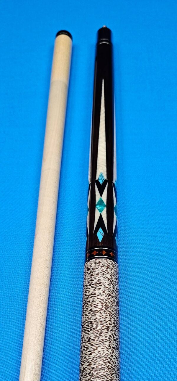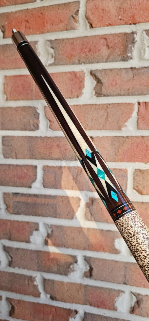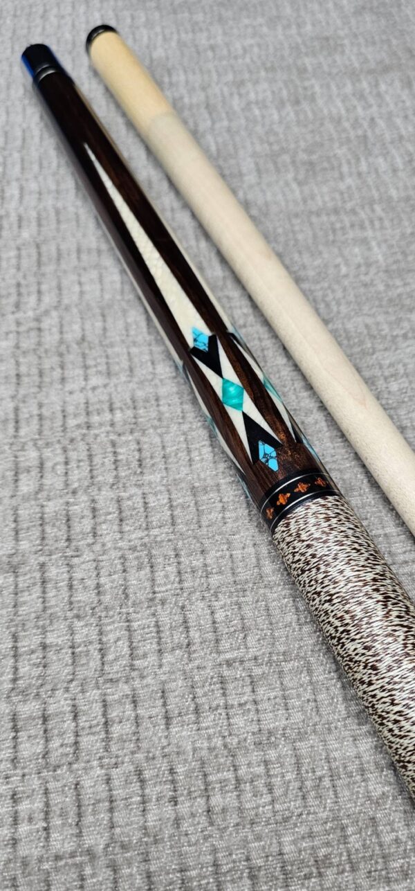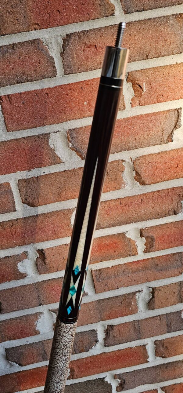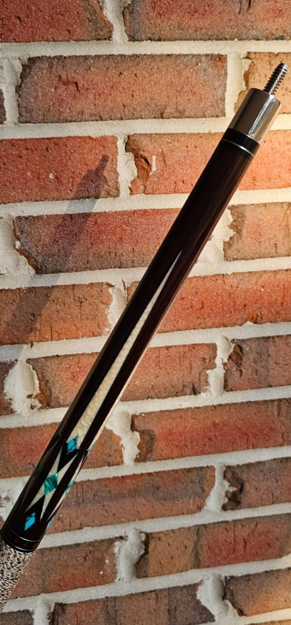 • The wood appears to be a nice, dark Cocobolo or some type of Ebony. What a nice looking cue!