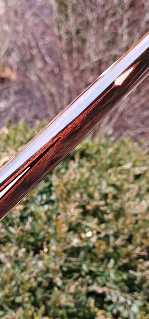 - The wood has incredible figure! At first glance it looks to be Macassar Ebony but we can’t say for sure. Cocobolo would be our next guess but either way it looks awesome and hits very good as you would expect from an old school Schon!
