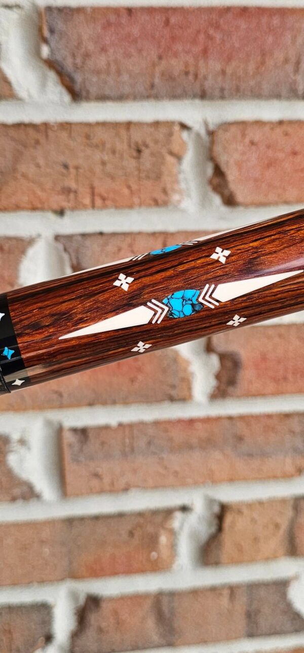 - 4- Points of exceptional Mexican Cocobolo w/ double blue & black veneers! The blue shades are Peacock & Indigo! They match the Turquoise inlays perfectly!