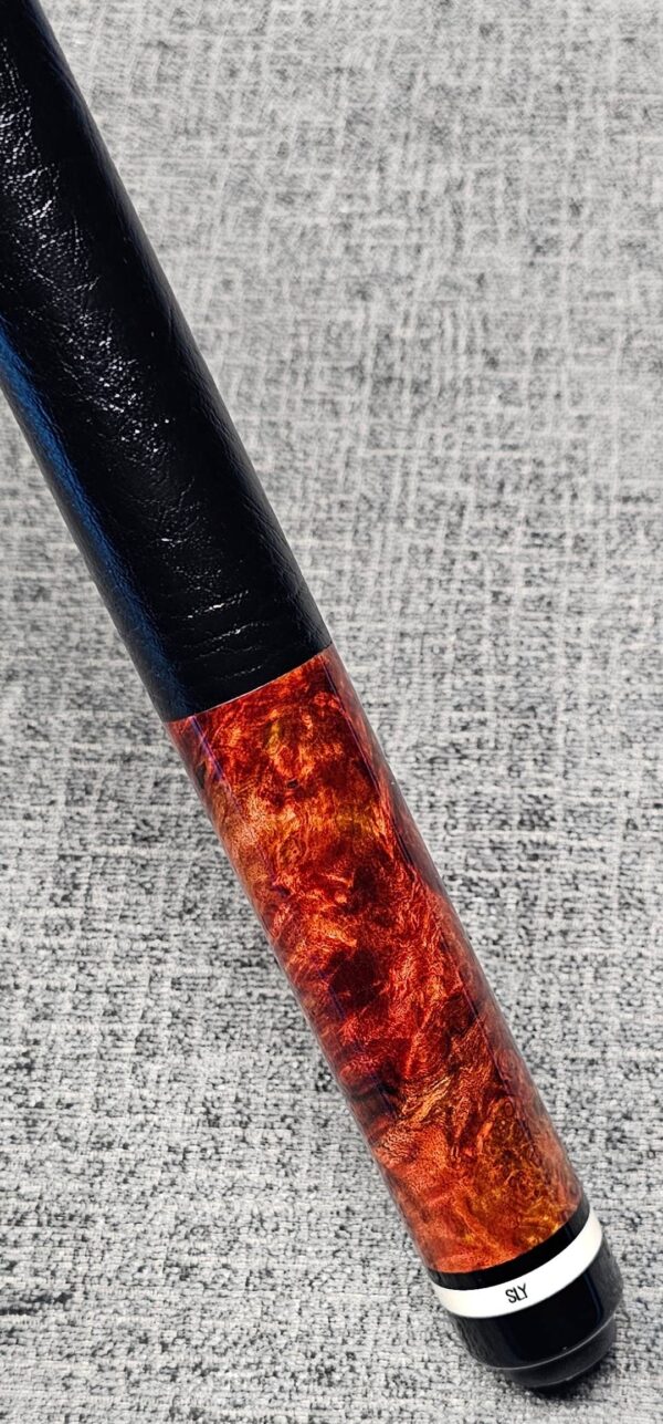 - Very well constructed cue like everything Leon Sly builds of course! This one is cored up top with Maple and it has a laminated Maple handle.This type of construction not only has a great hit and awesome overall playability, it’s made to stand the test of time…….. Very stable, durable, and well balanced.