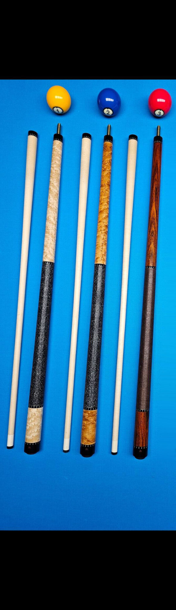 - The Handles are full size, the hit is definitely very good and solid! Old school Cuemaking right here for sure! The weight looks to be able to be adjusted if needed. Straight up player cues right here baby.