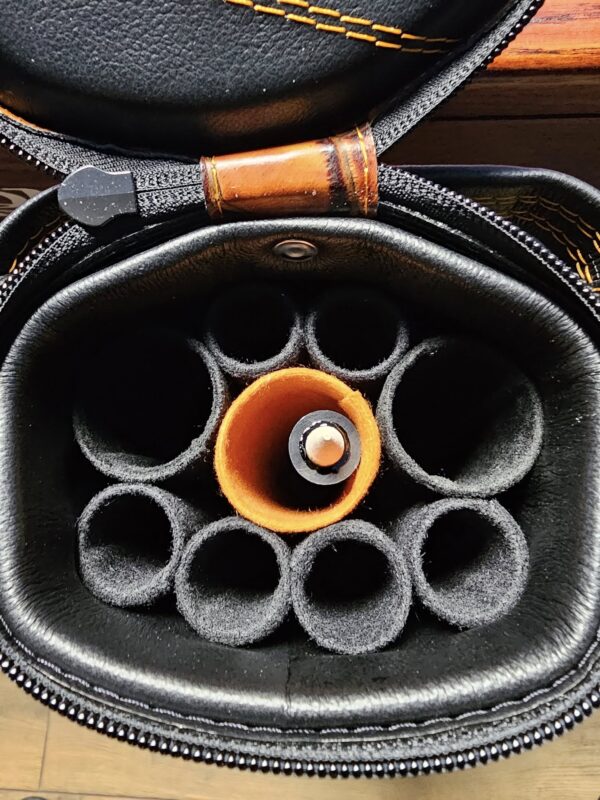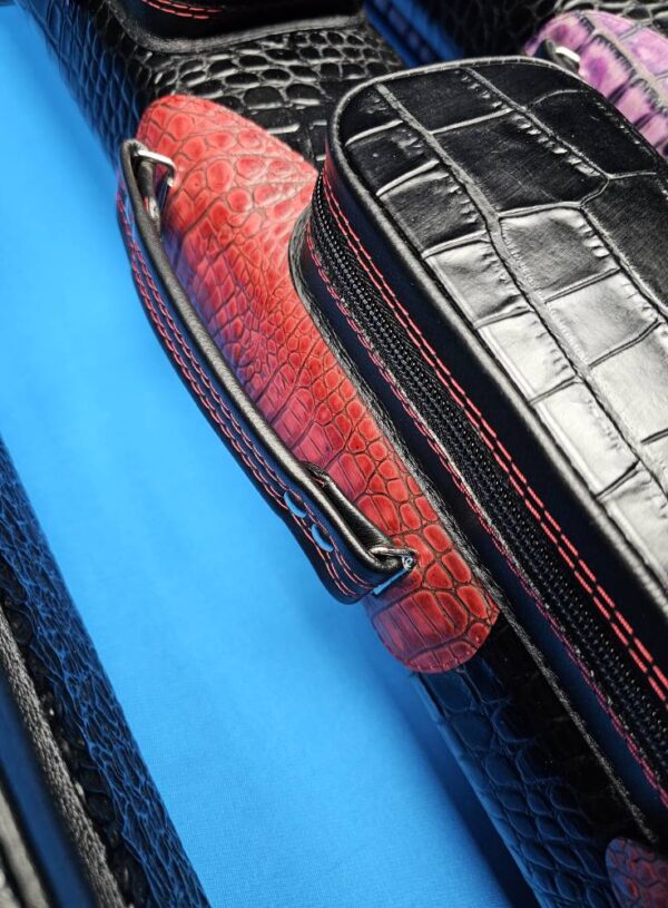#2: Tuscany Black ( Body, Pouches, Lid, Bottom, & Pulls.) Horn Ruby ( BT, Saddle, Pad, TT Zip, Spines. ) -Smooth Black Remainder- Scarlet Double Stitching- Scarlett Separation Tubes. – $ 1,950!